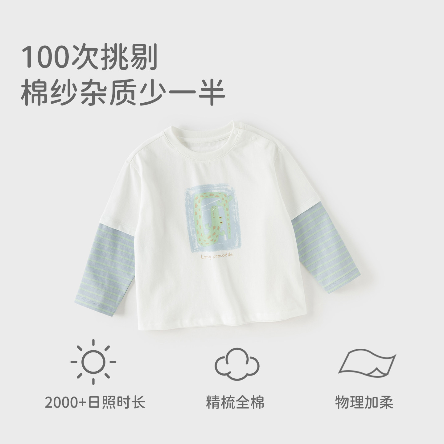 戴维贝拉男童长袖T恤宝宝A类纯棉上衣2026春新款儿童假两件打底衫