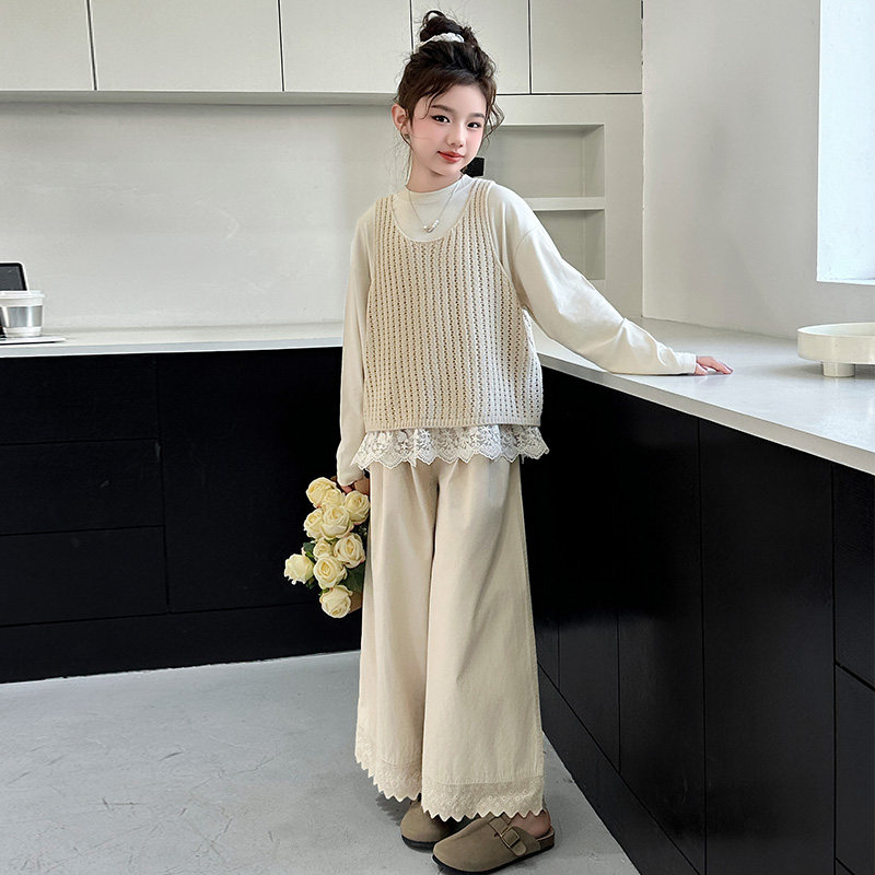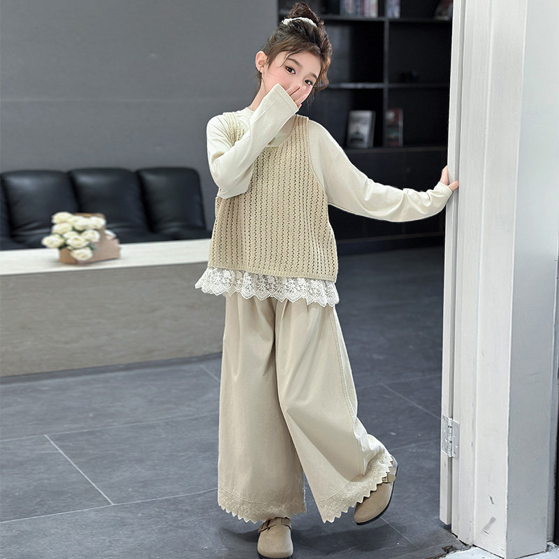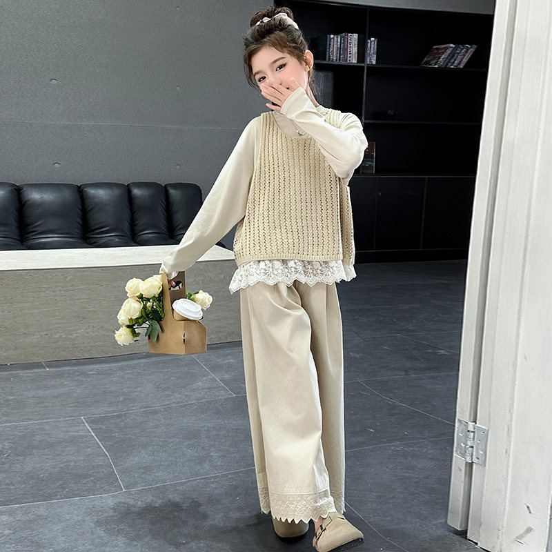 女童套装春秋2026新款儿童洋气长袖春装女孩大童时髦炸街马甲衬衫
