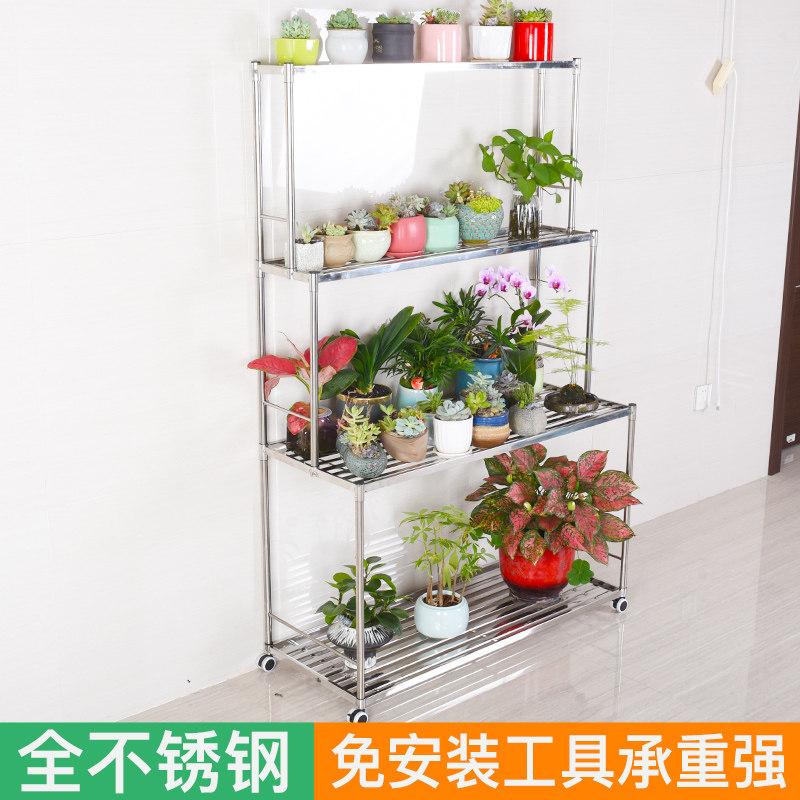 不锈钢花架阶梯落地式置物架可移动多层肉盆架阳台室内客厅花架子