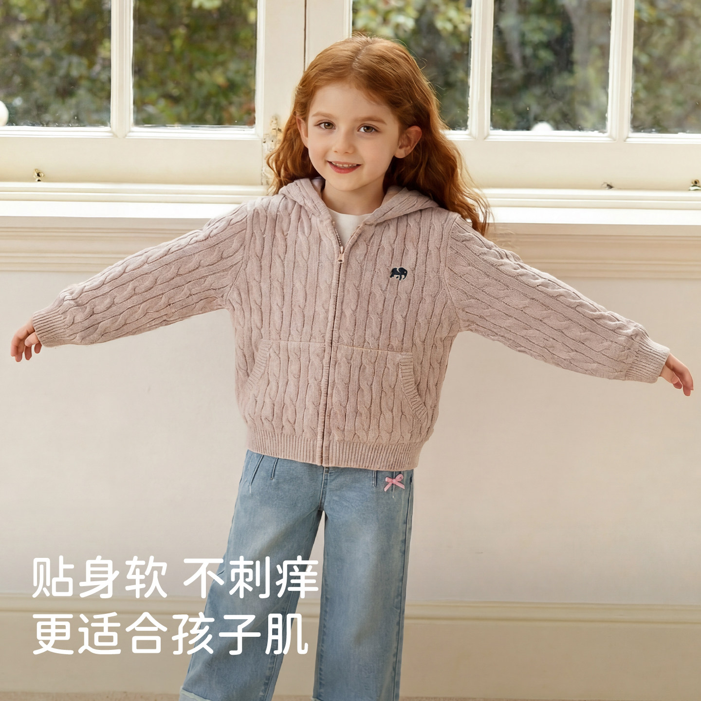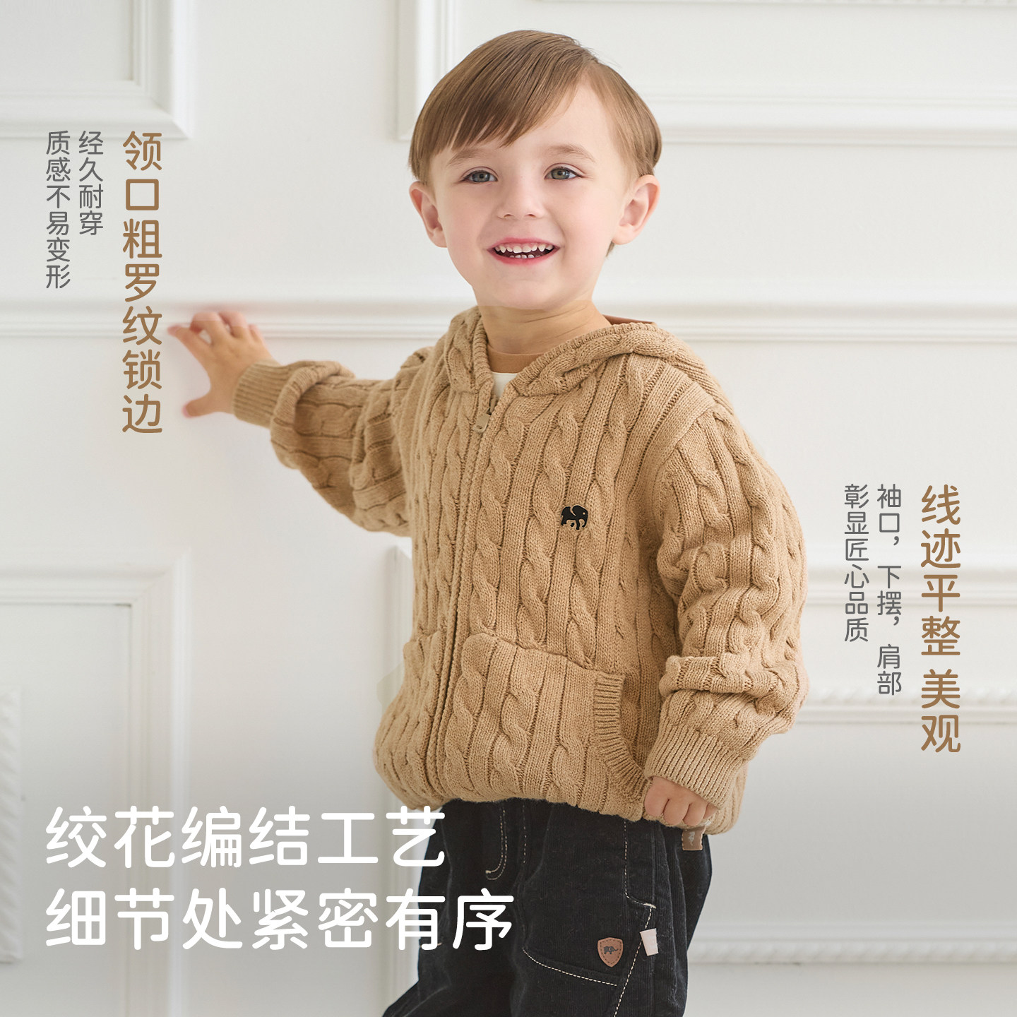311线报网描述:戴维贝拉儿童毛衣外套童装连帽编织外搭开衫
