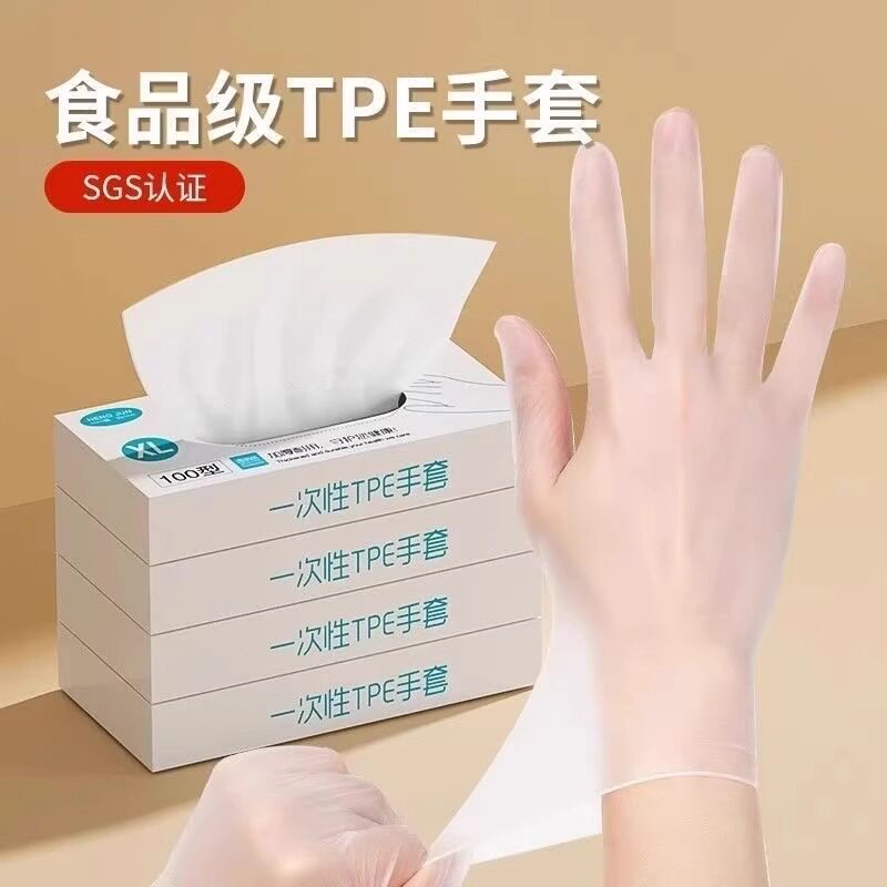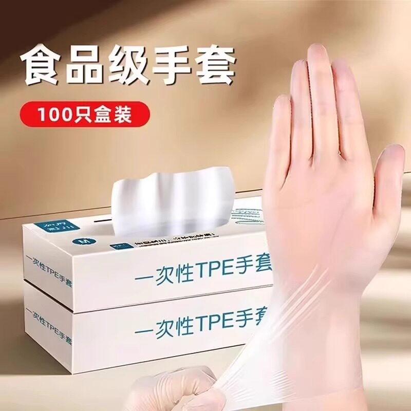 一次性手套食品级专用TPE塑料商用加厚耐用厨房餐饮抽取式盒装