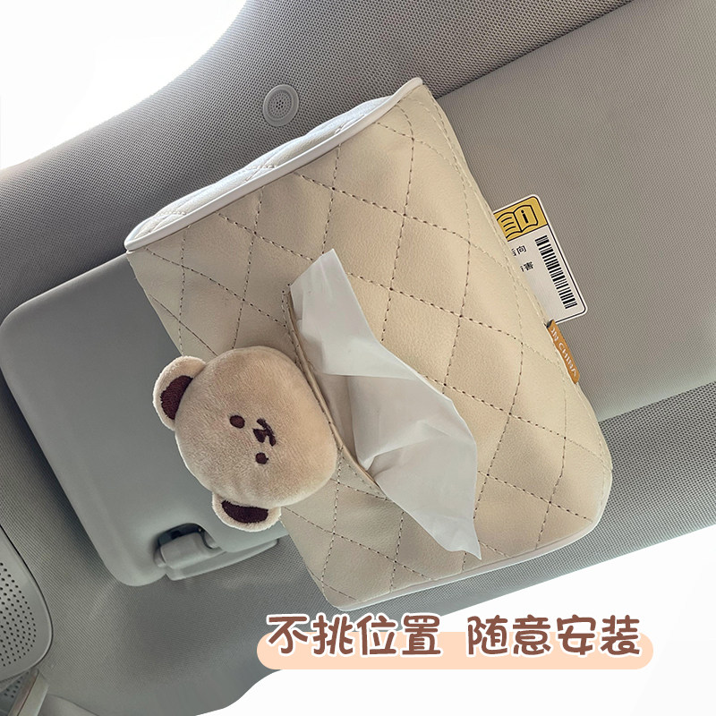车载纸巾盒高级感汽车抽纸袋挂式女士创意可爱网红款车内装饰品