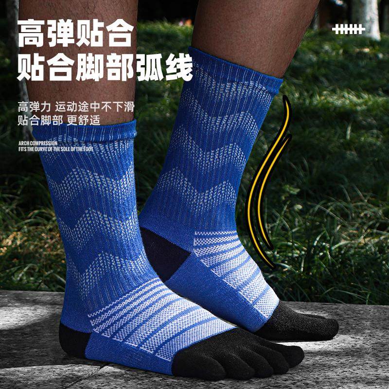 美利奴羊毛五指袜马拉松运动跑步袜徒步登山男女透气中长筒袜速干
