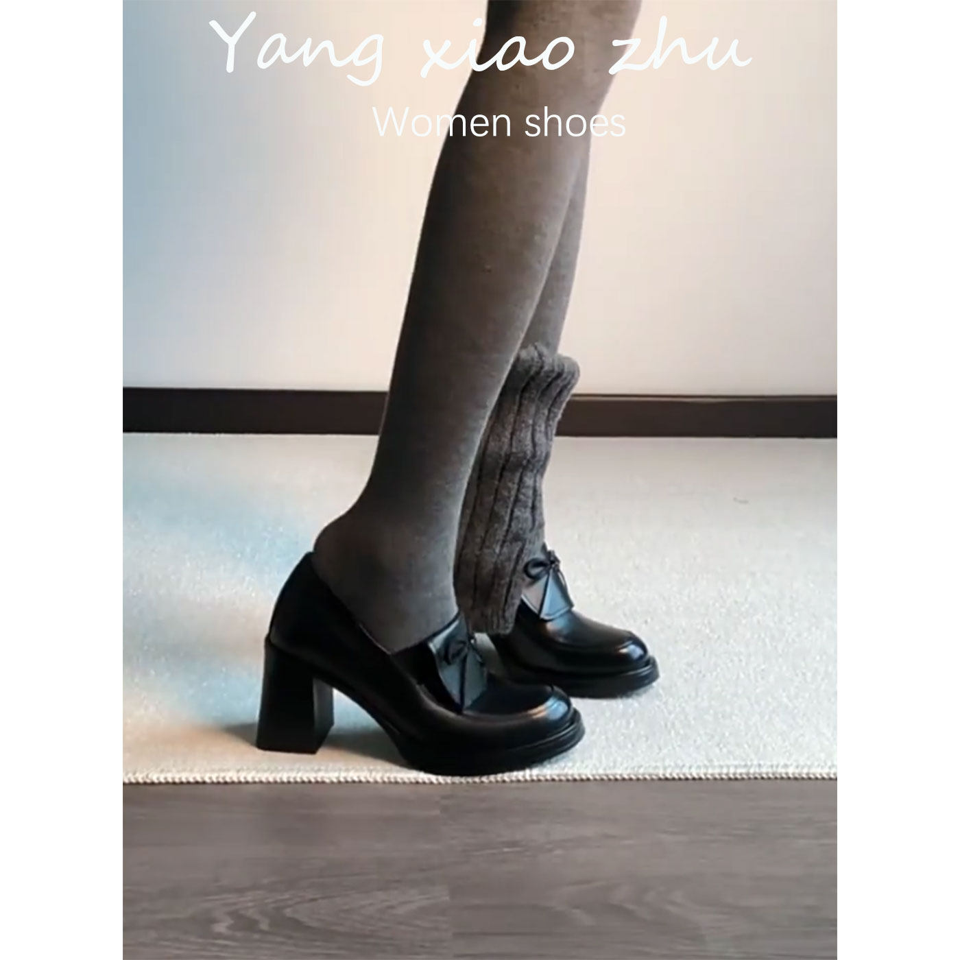 牛皮版~2026春款真皮粗跟乐福鞋女小皮鞋高跟鞋玛丽珍单鞋女黑色