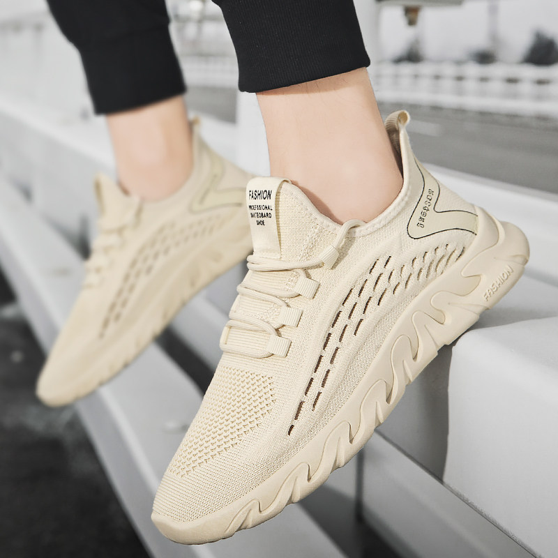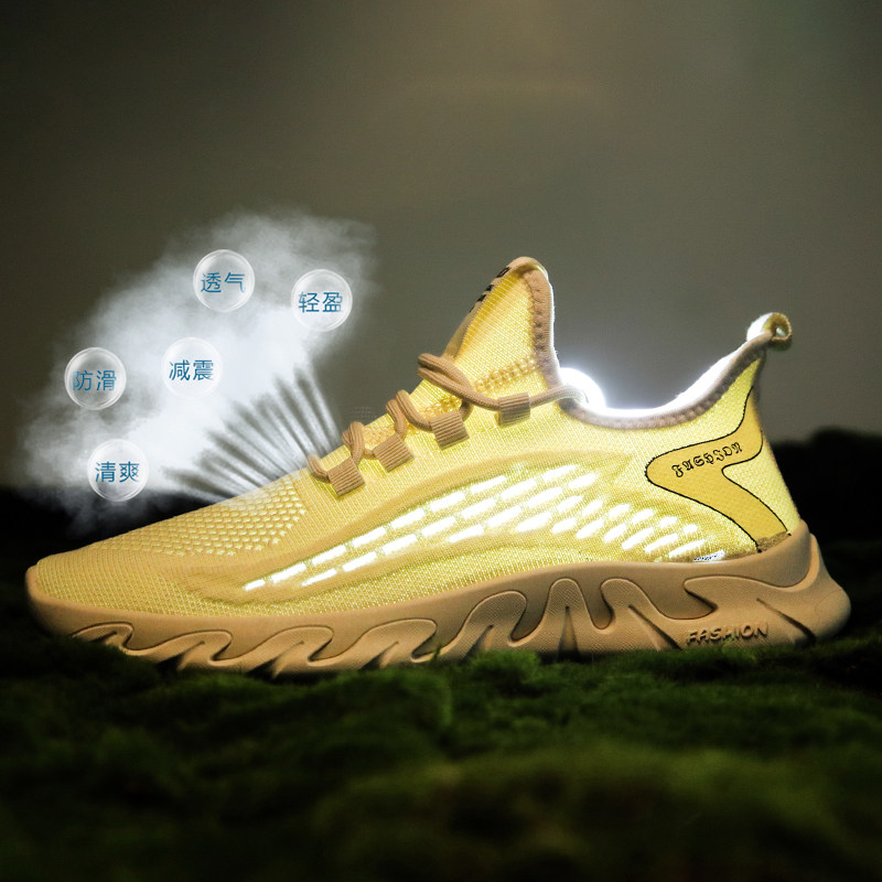 男鞋夏季透气上班薄款飞织网面轻便软底休闲增高椰子鞋跑步运动鞋