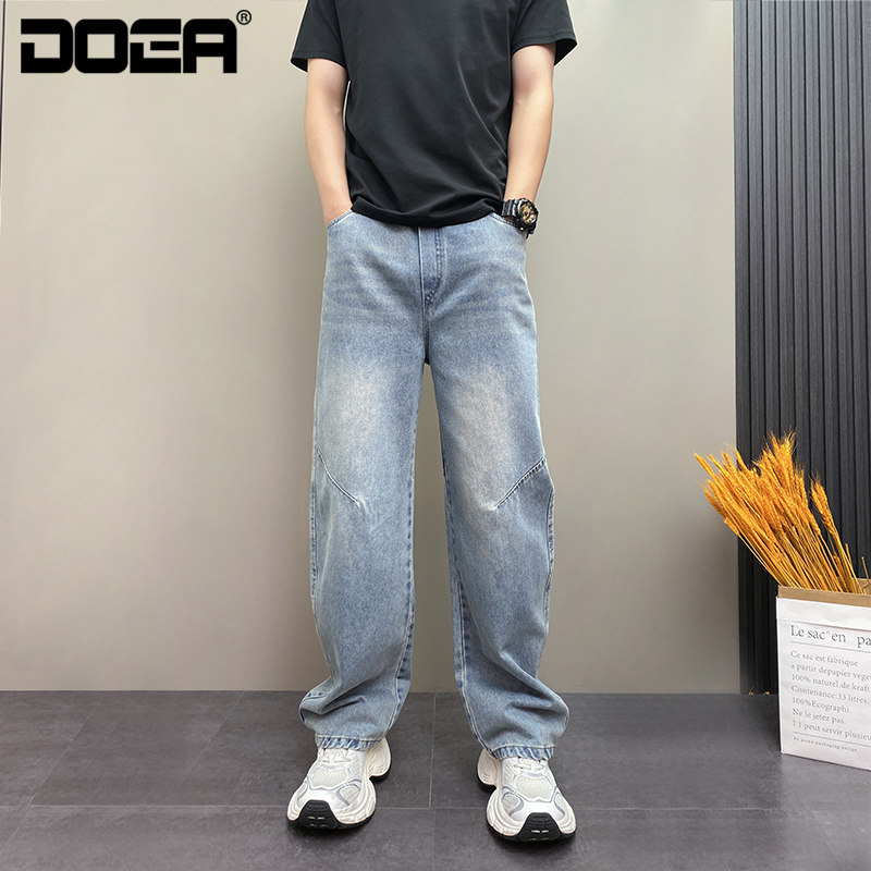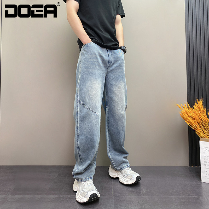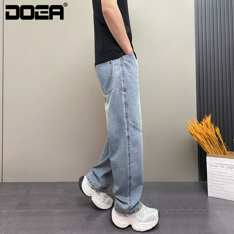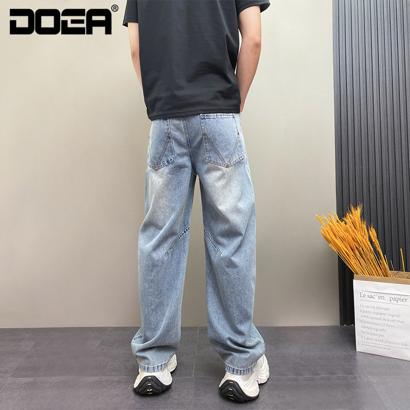 2026春夏季新款浅蓝色牛仔裤男潮牌拼接阔腿裤复古水洗宽松直筒裤