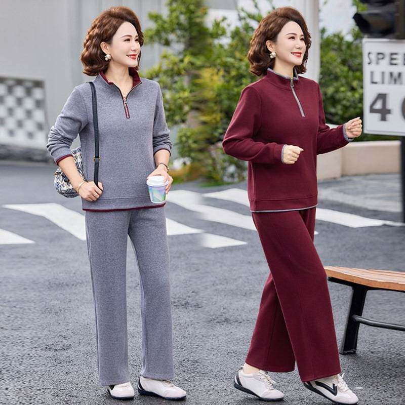 专柜品牌中老年女春季立领运动套装妈妈春秋洋气今年流行的卫衣减