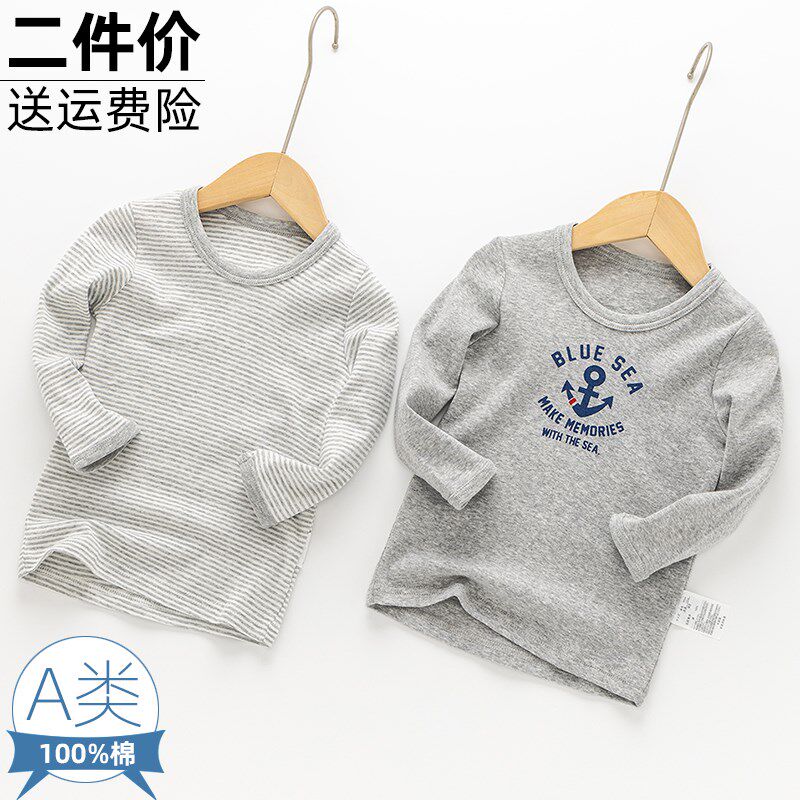 春款儿童男童孩宝宝纯棉薄款a类圆领长袖秋衣T恤衫内衣睡衣打底衫