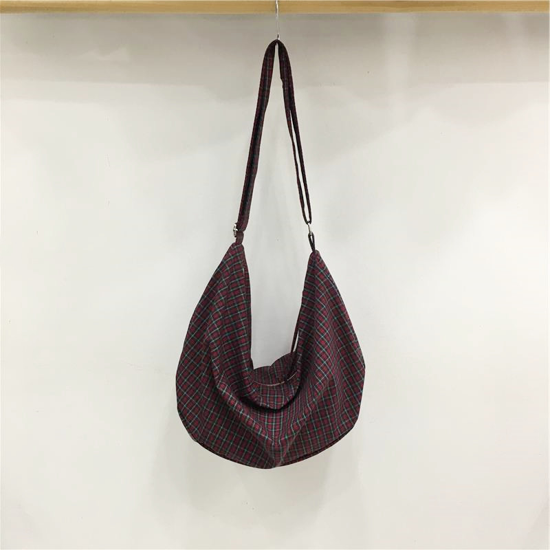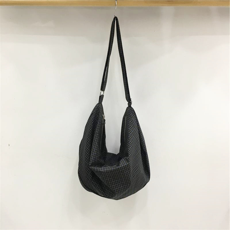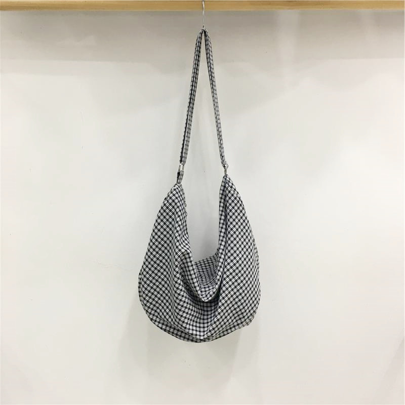 小脏柜 韩版男女休闲轻便格纹帆布包大容量斜挎包百搭慵懒饺子包