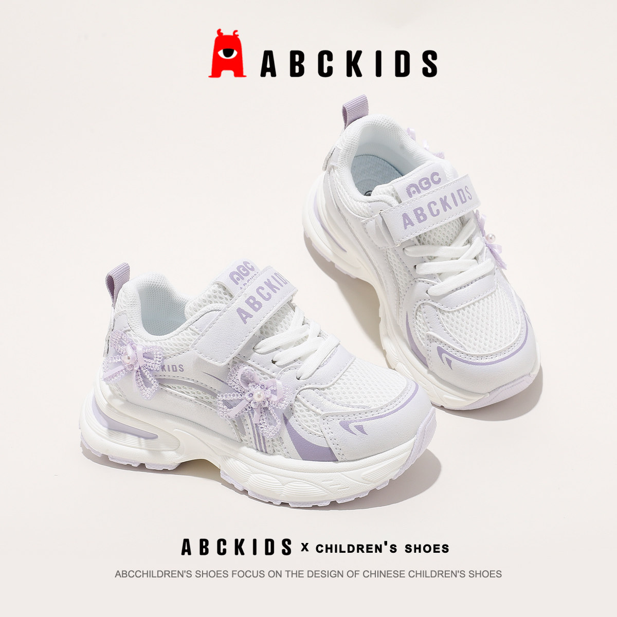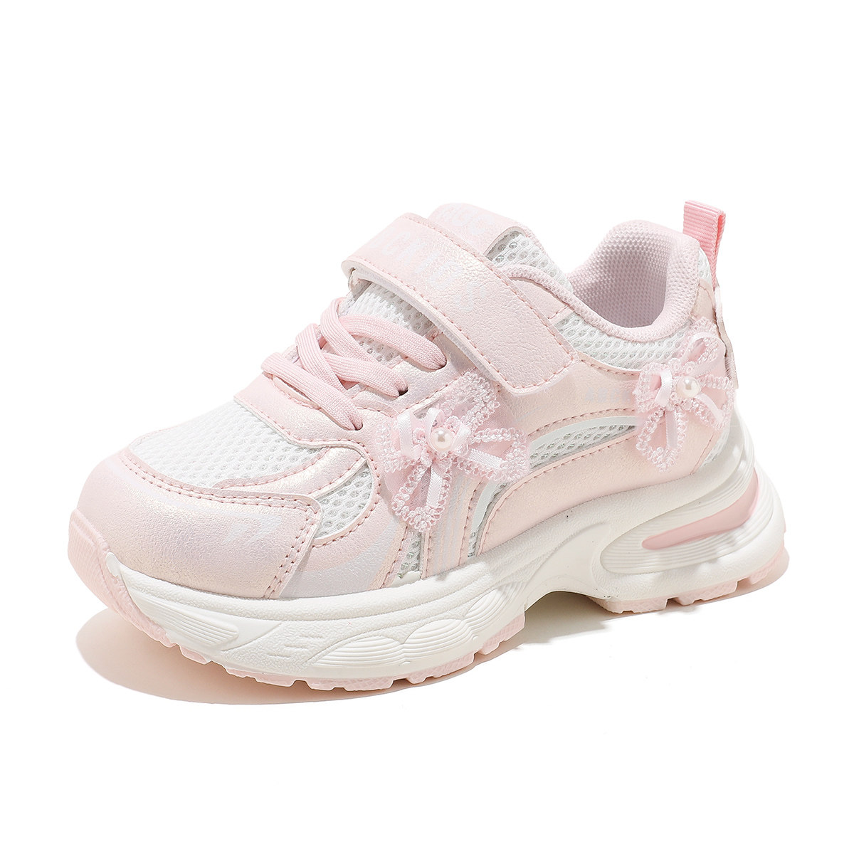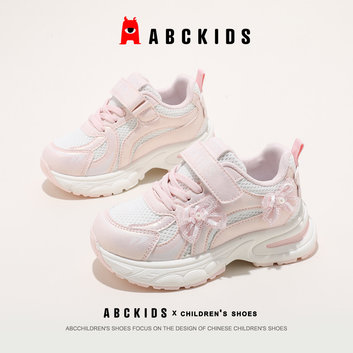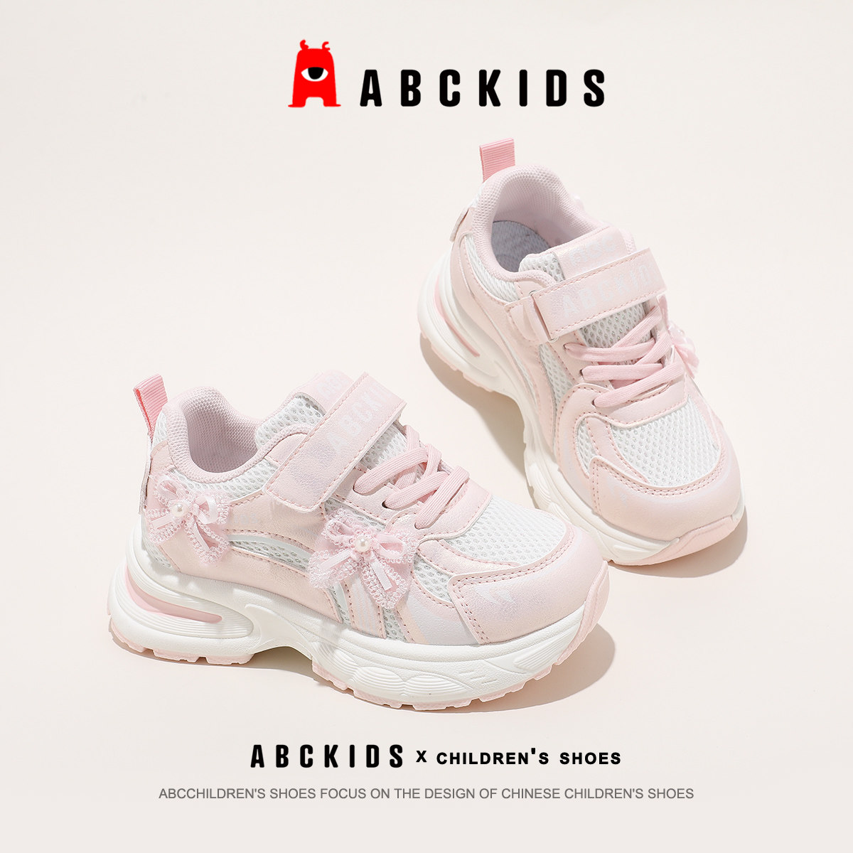 Abckids儿童运动鞋女童透气网面老爹鞋魔术贴防滑休闲鞋2026春款
