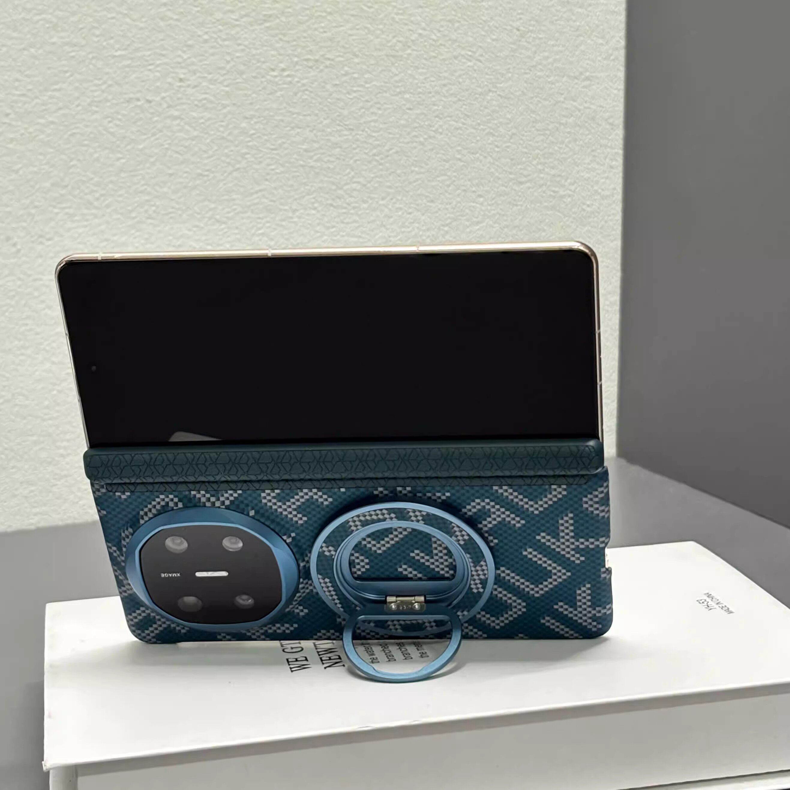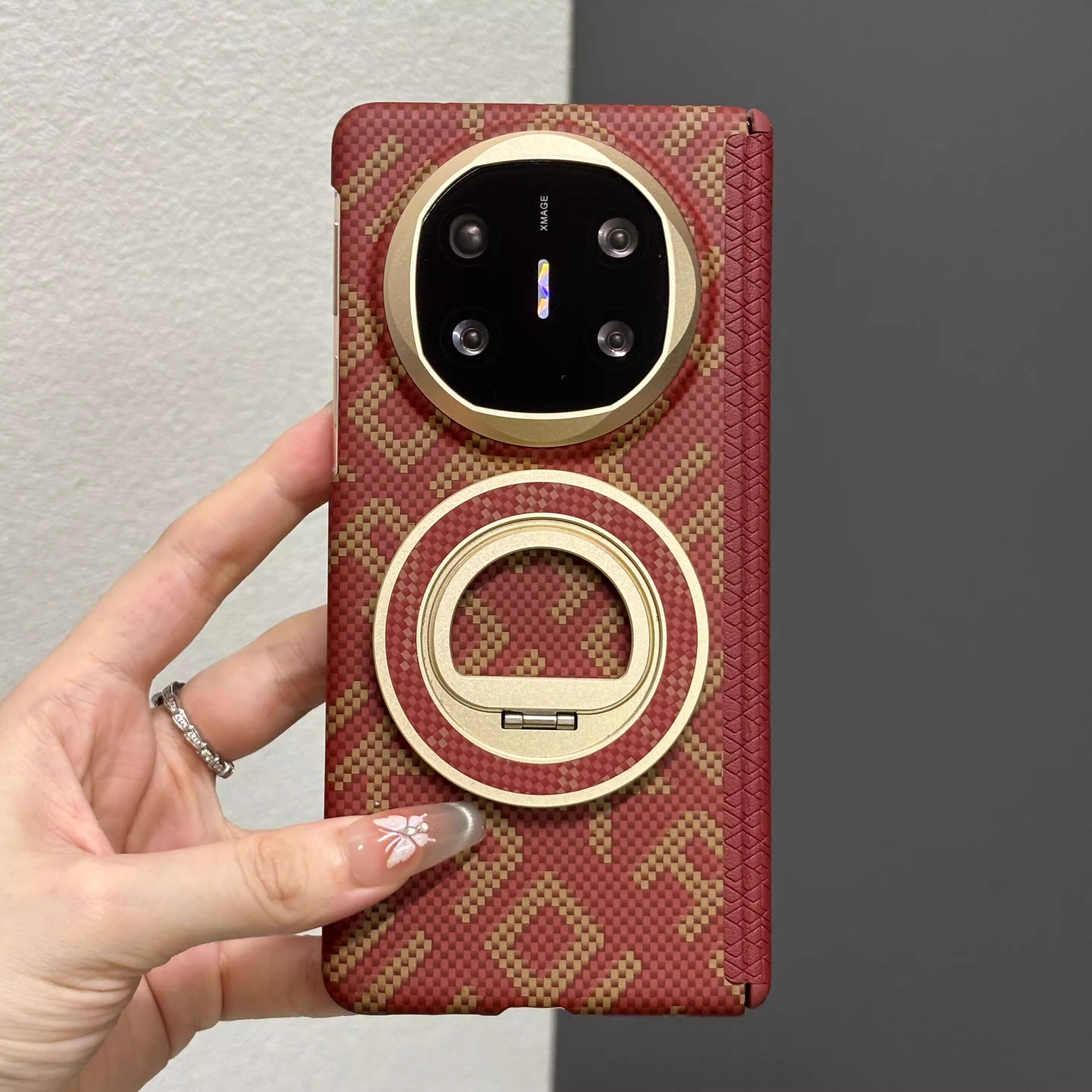 适用于华为matex7典藏版手机壳新款磁吸旋转支架超薄磨砂商务高级感碳纤维纹x6保护套中轴铰链全包防摔x5高档