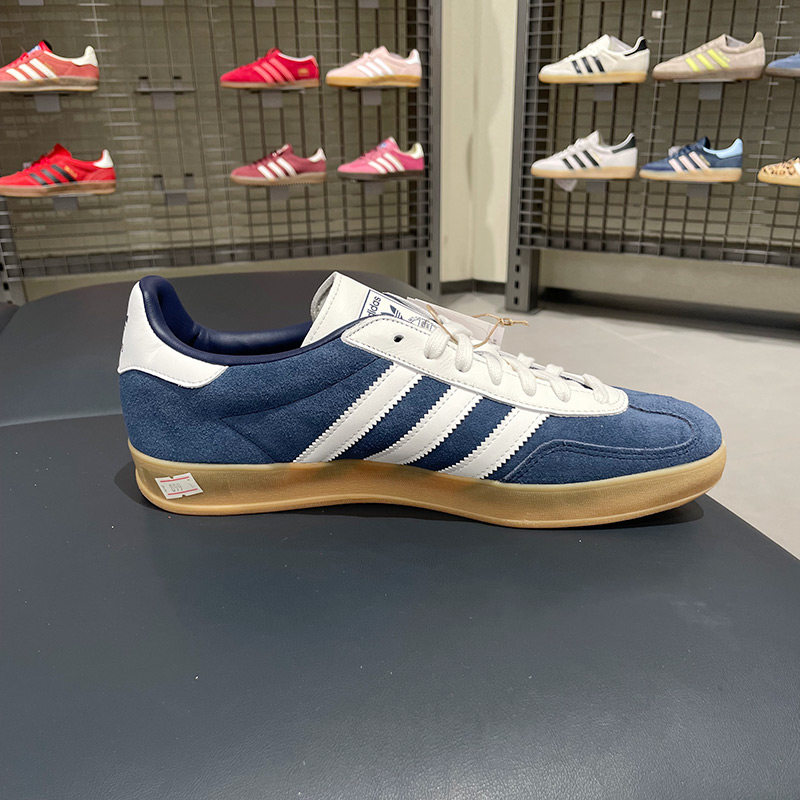 阿迪达斯三叶草男女鞋2026夏季藏蓝色翻毛皮复古德训鞋板鞋IH9650