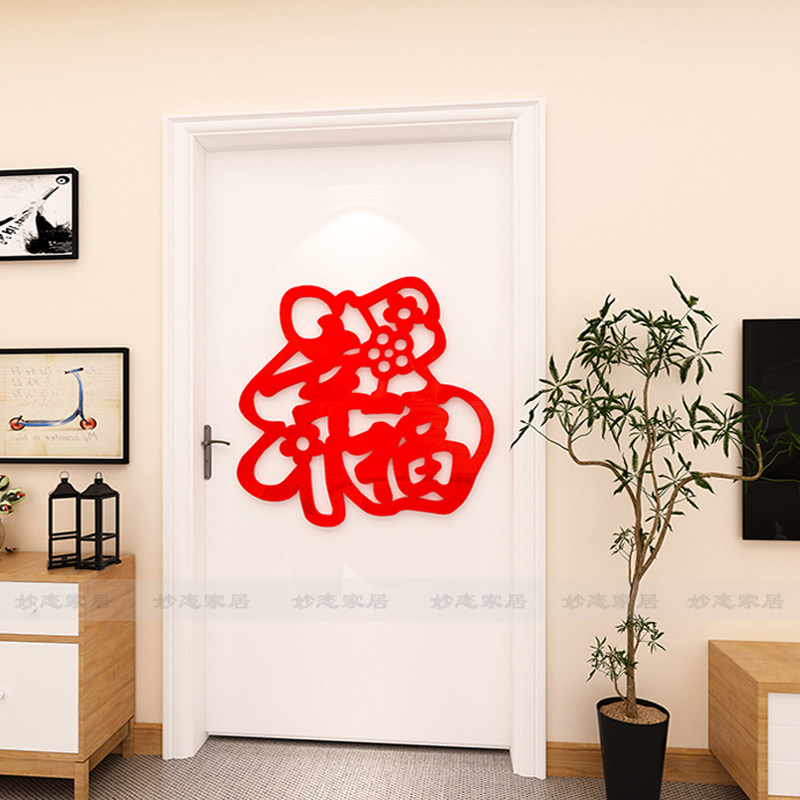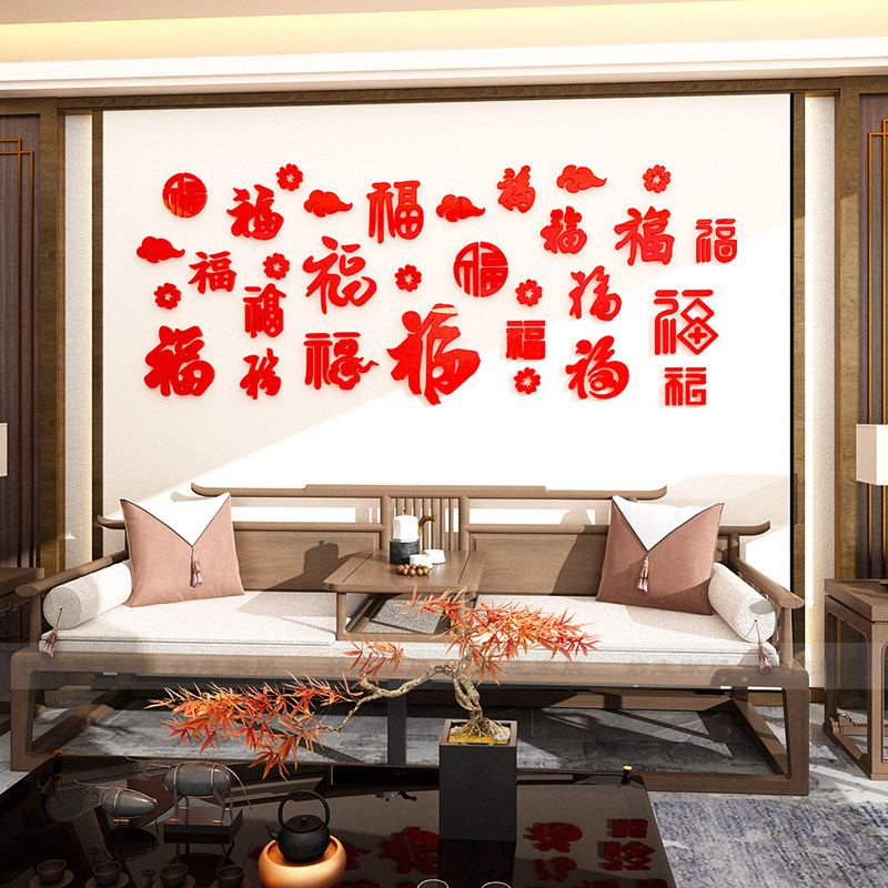 2024新过年装饰电视沙发背景墙面装饰挂饰自黏贴纸压克力3d立体