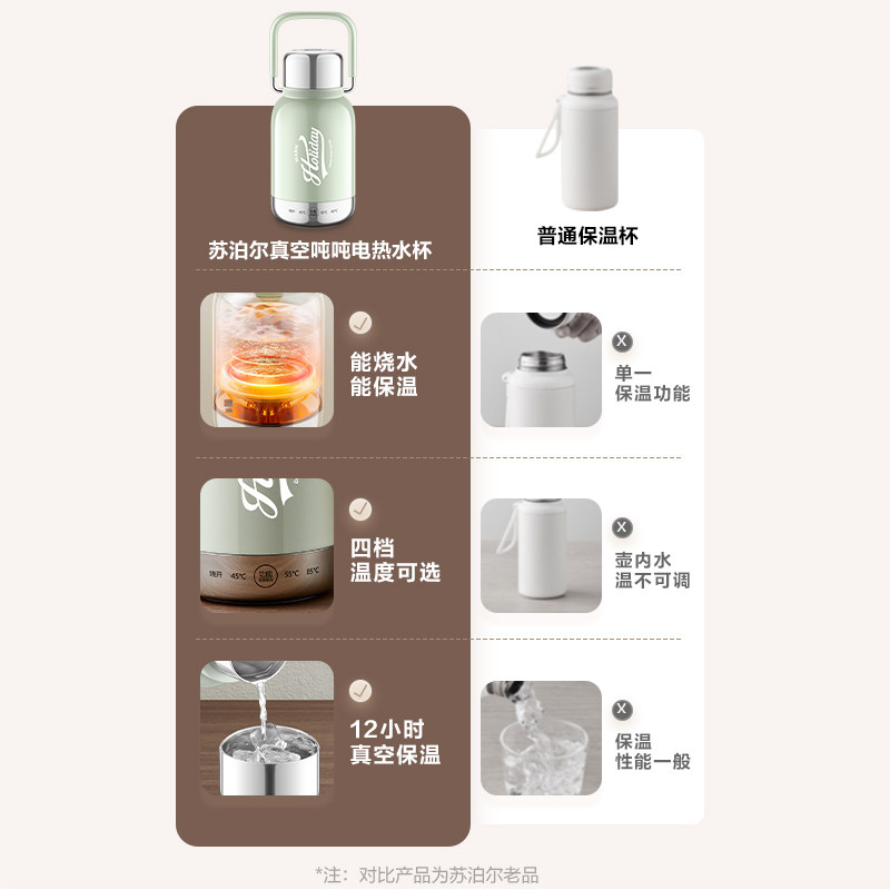 苏泊尔烧水便携式烧水壶小型恒温壶电热水杯加热保温杯旅行热水壶