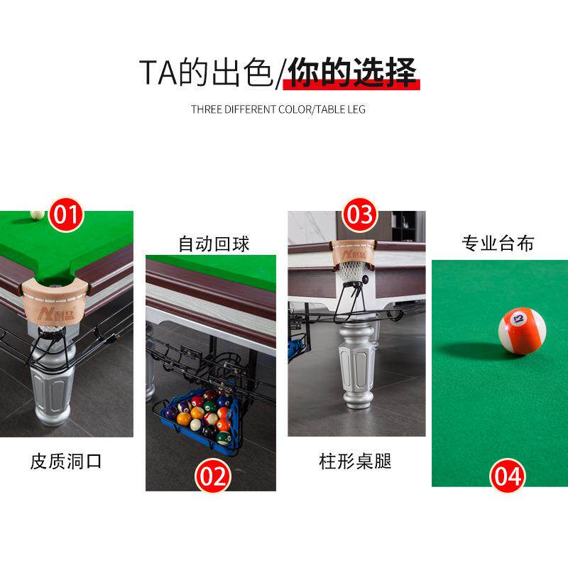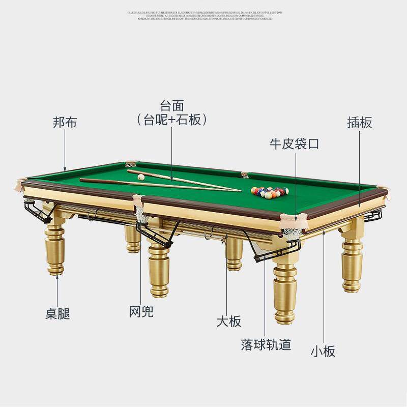 耐品台球桌标准型家用商室内庭桌球台美中式黑八乒乓多功能大理石