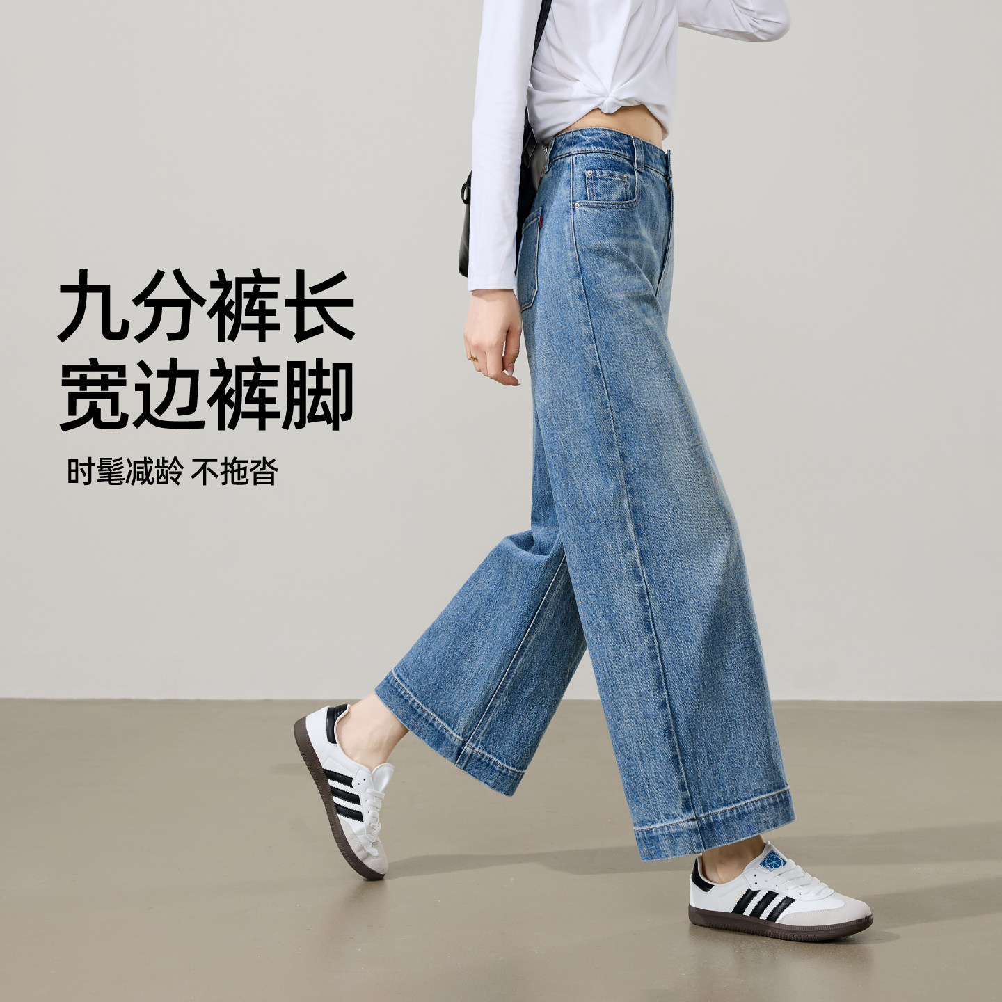 逸阳九分宽边显瘦阔腿裤女款2026春季新款不易掉色直筒小个子裤子