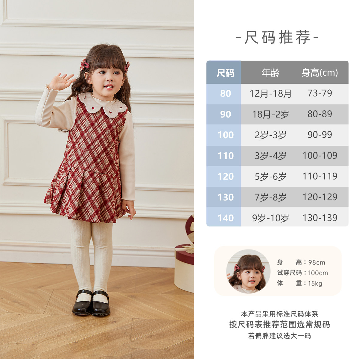 [新年款]女童红色连衣裙洋气小公主冬装圣诞服装生日party小礼服