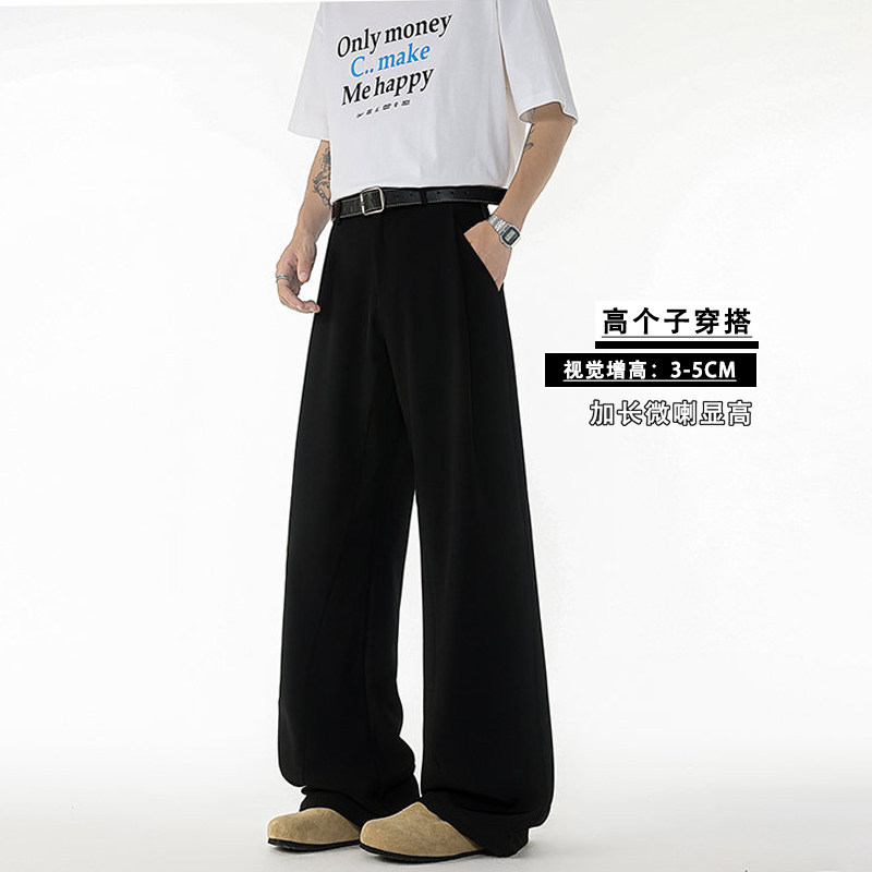 加长西裤男士高个子春秋冬季厚款加绒青少年垂感阔腿微喇裤子黑色