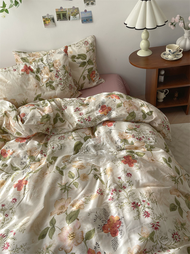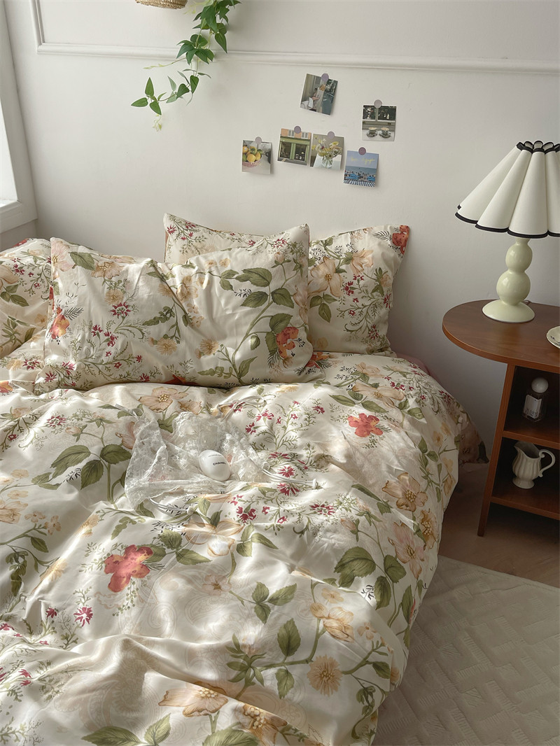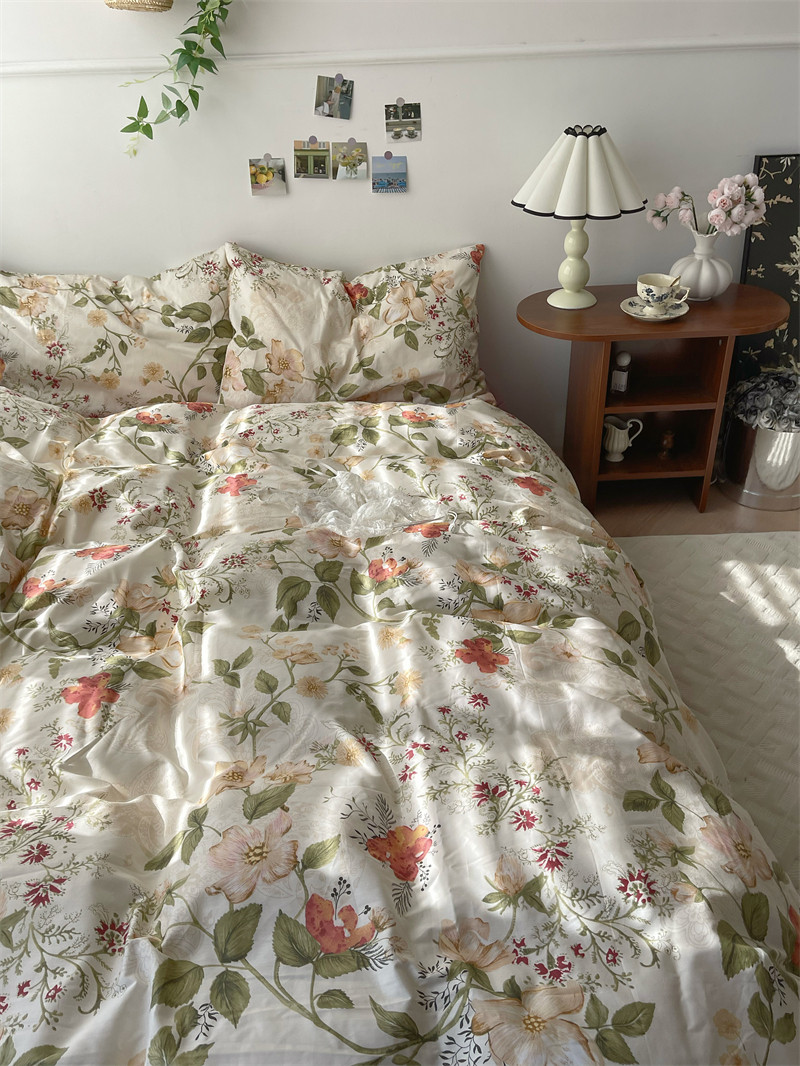 梨梦 莫奈花园 ins可爱40支纯棉四件套全棉床单被套宿舍床上用品