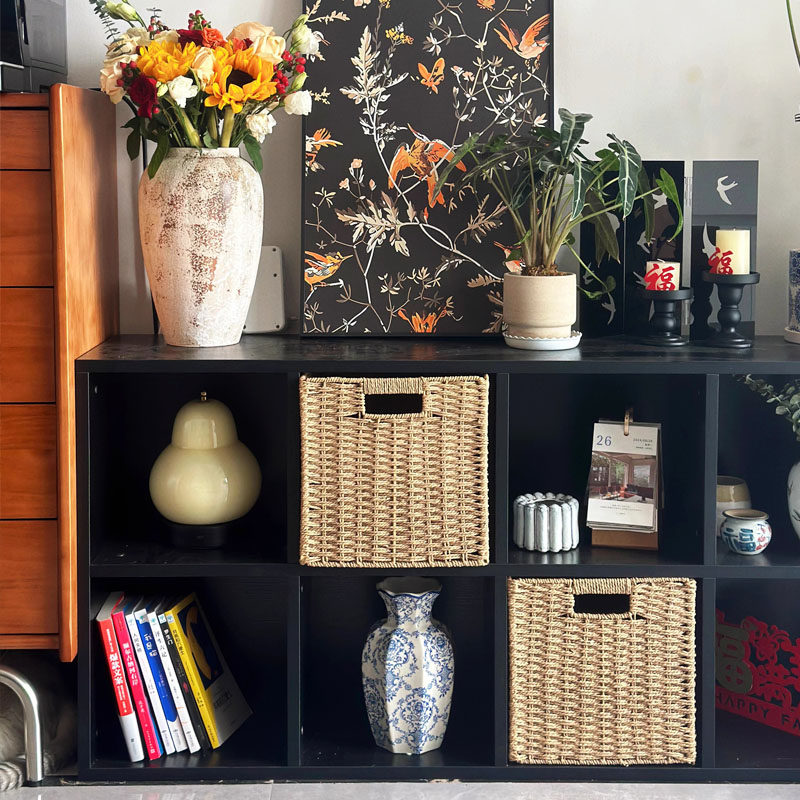 定制黑色柜子书柜落地展示柜靠墙矮柜格子柜自由组合柜客厅置物柜