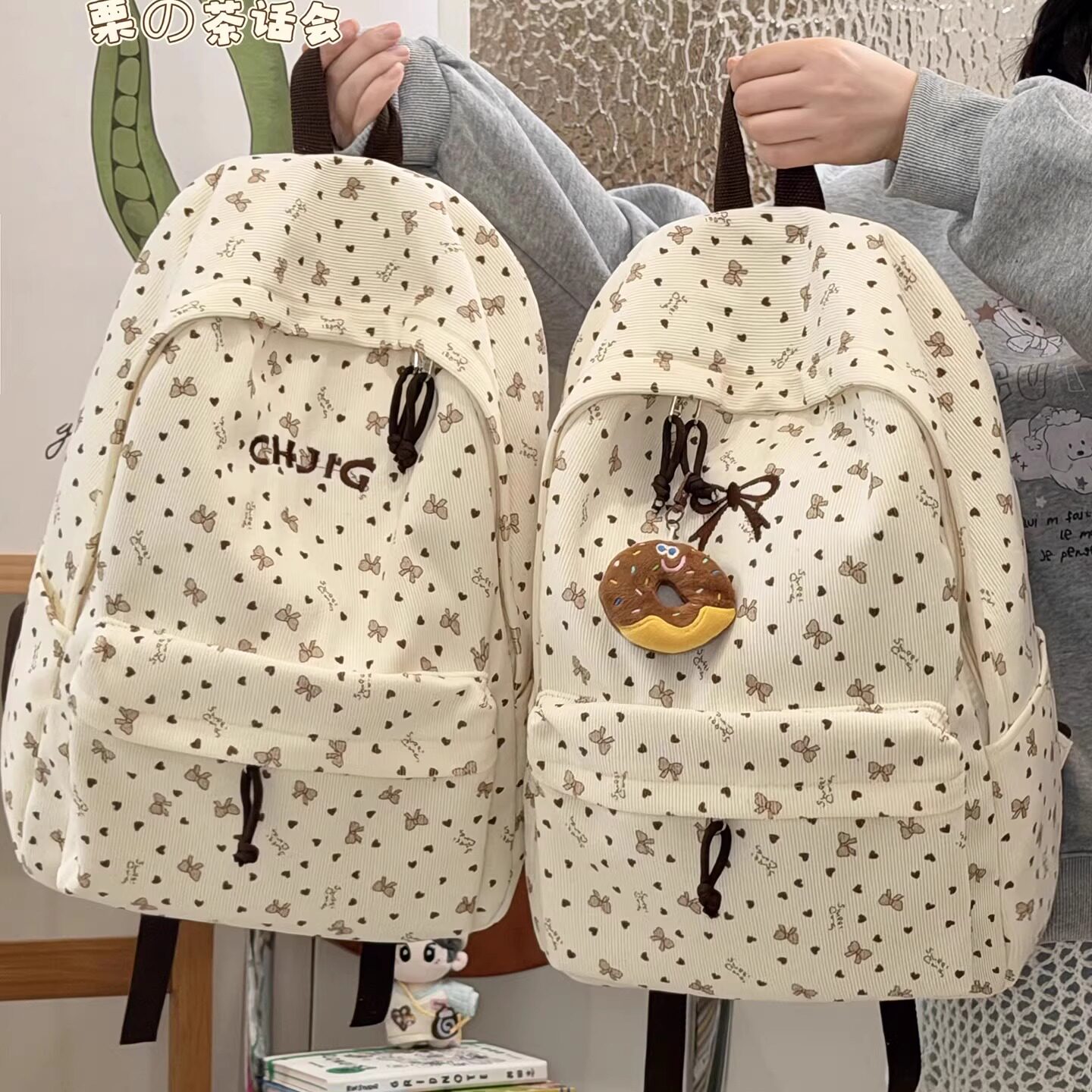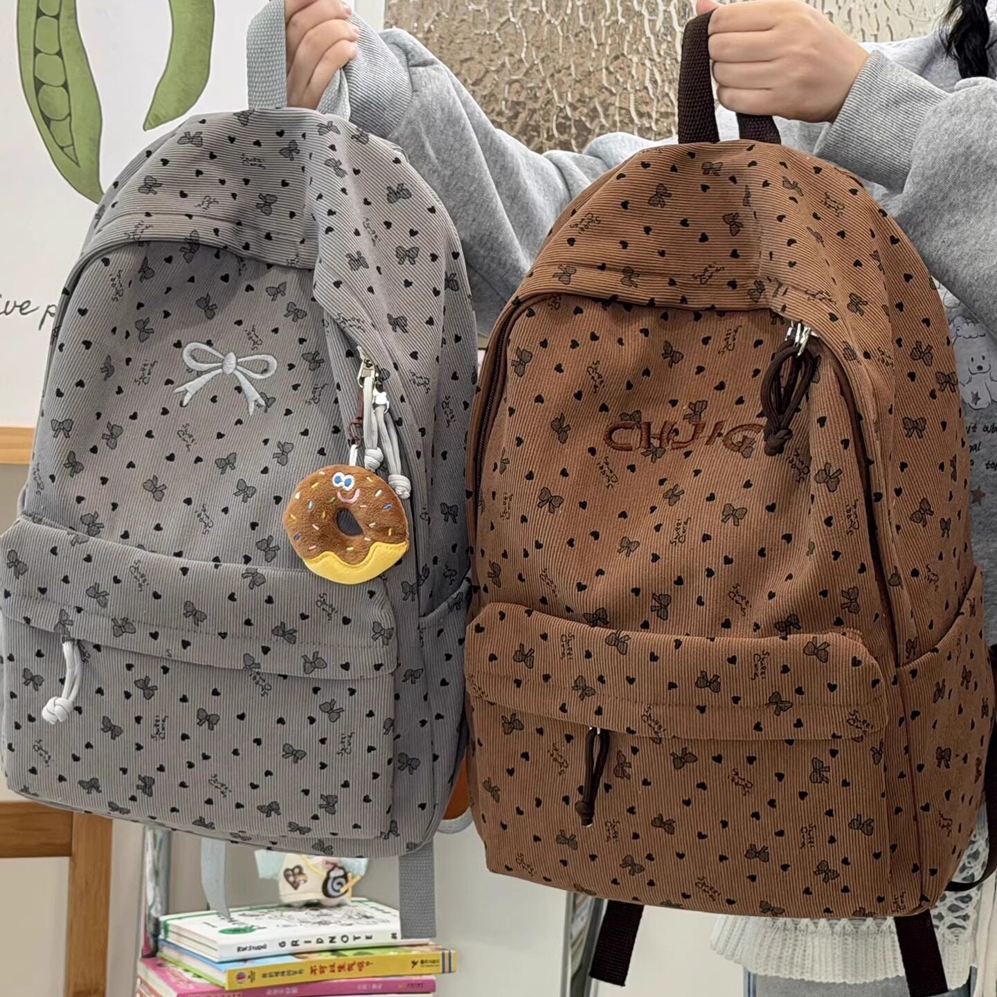 日系ins少女心蝴蝶结书包 初高中学生双肩包大容量秋冬灯芯绒背包