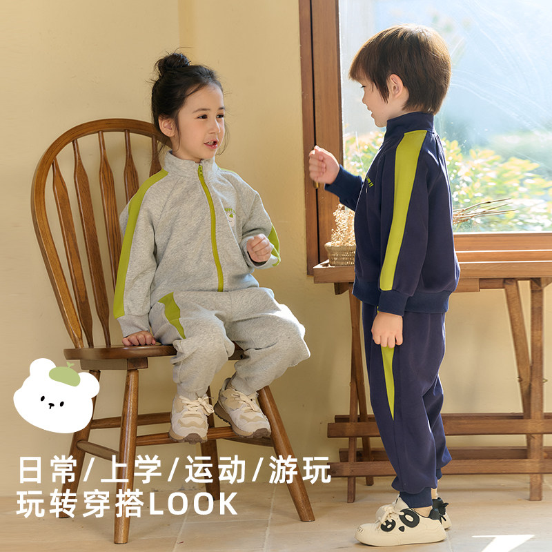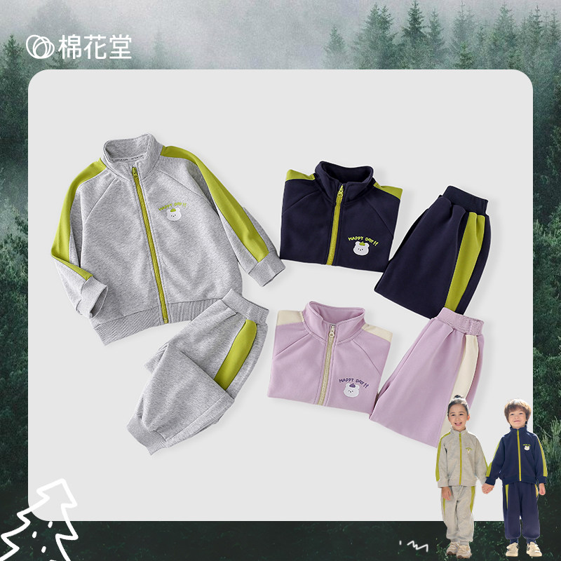 棉花堂儿童套装复古百搭新款宝宝卫衣女童外套春秋款男童运动套装