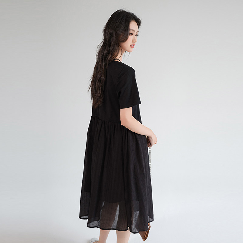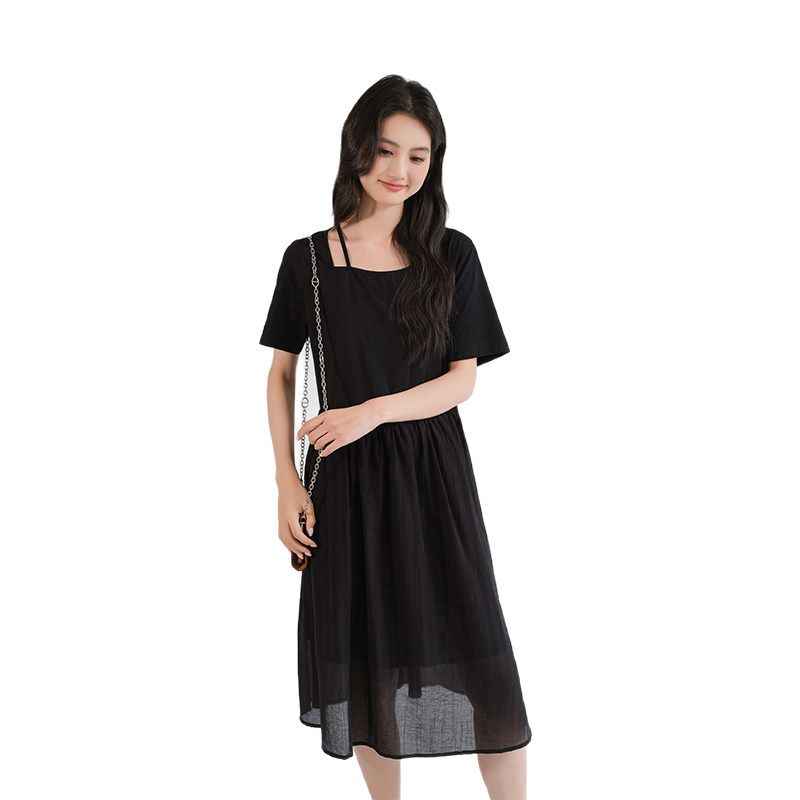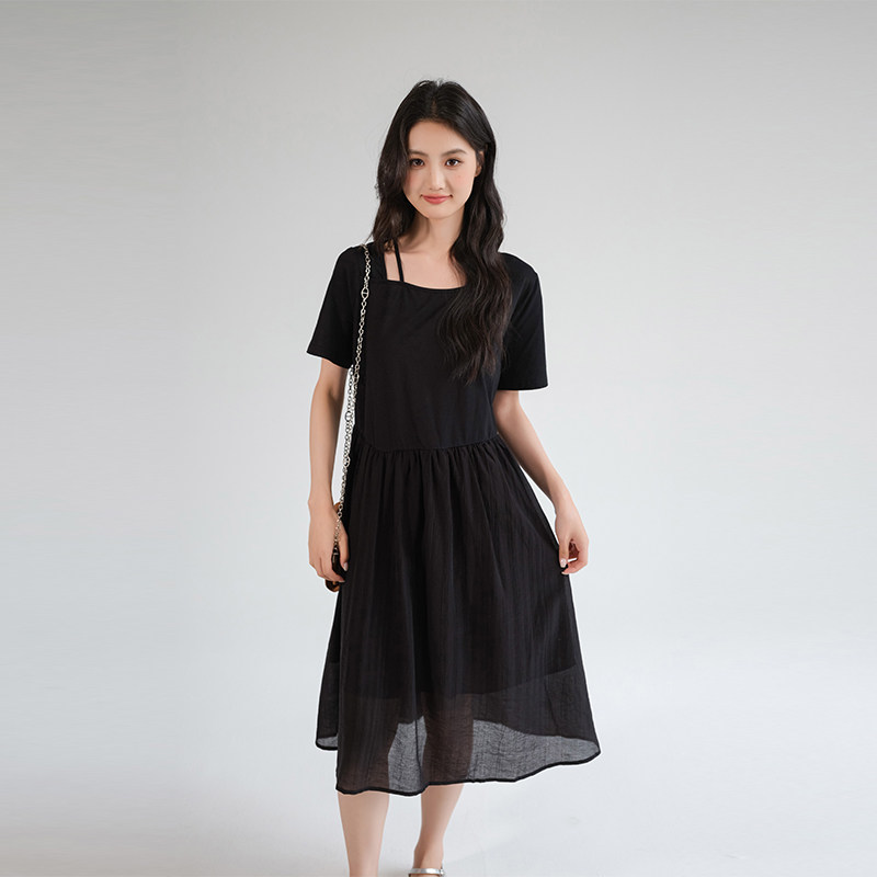 311线报网描述:气质赫本风小黑裙显瘦收腰遮肚子通勤连衣裙