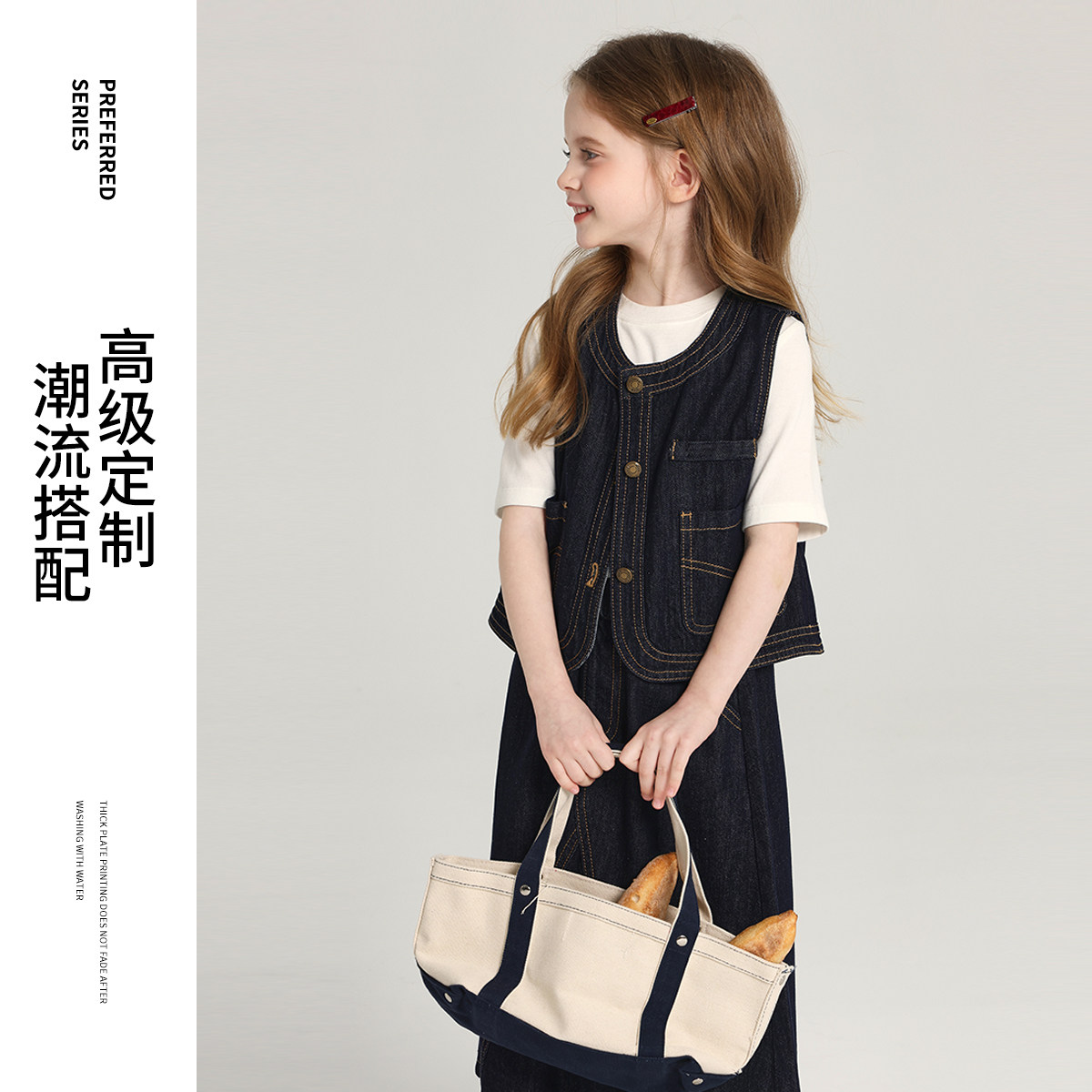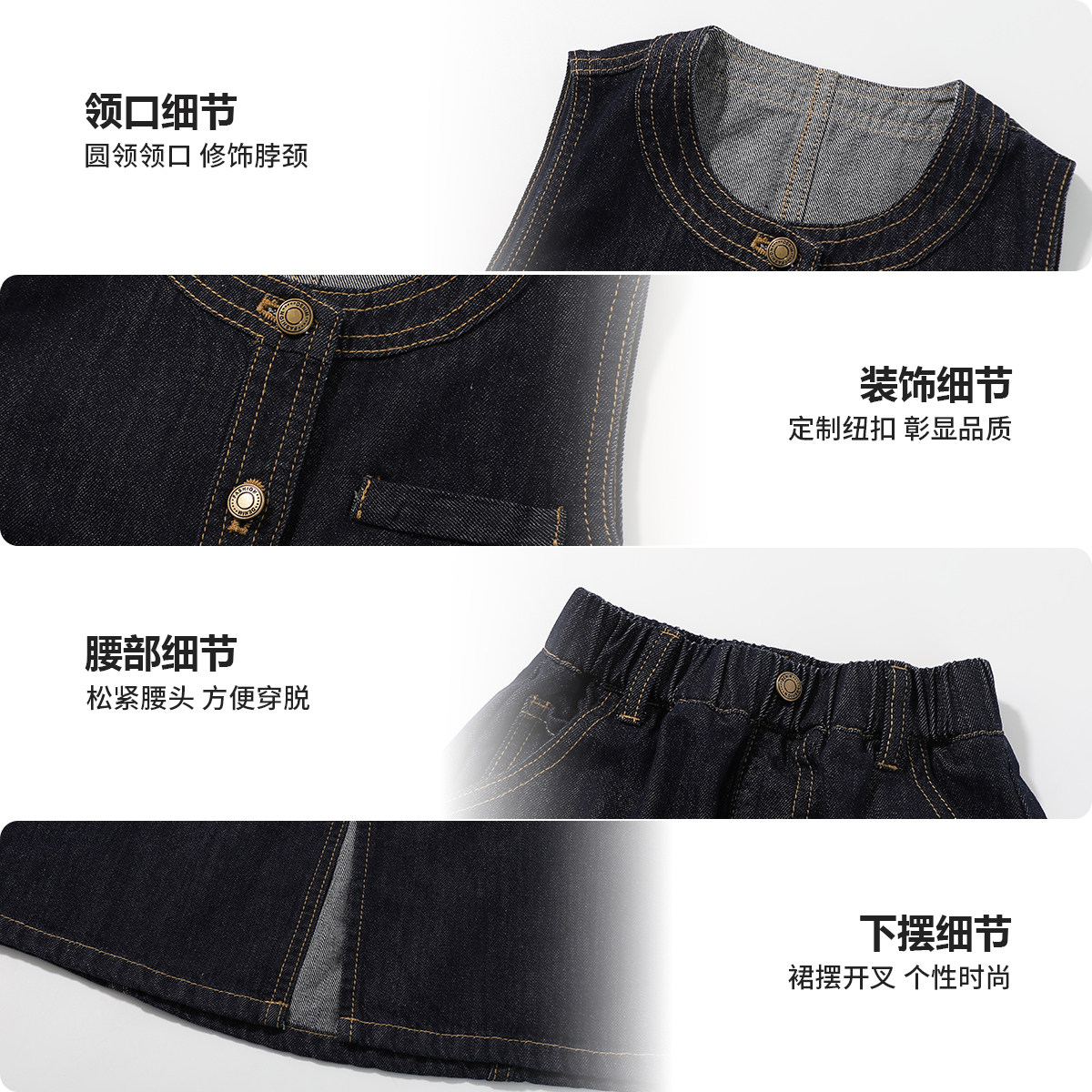 布丁哈鲁童装春装女童洋气2026春夏新款儿童牛仔马甲半身长裙套装