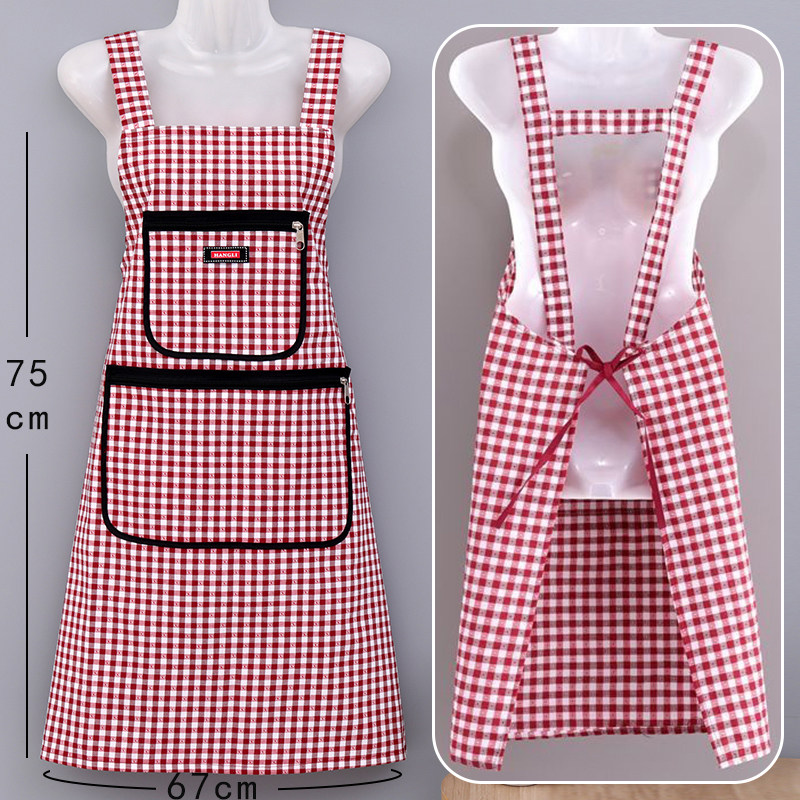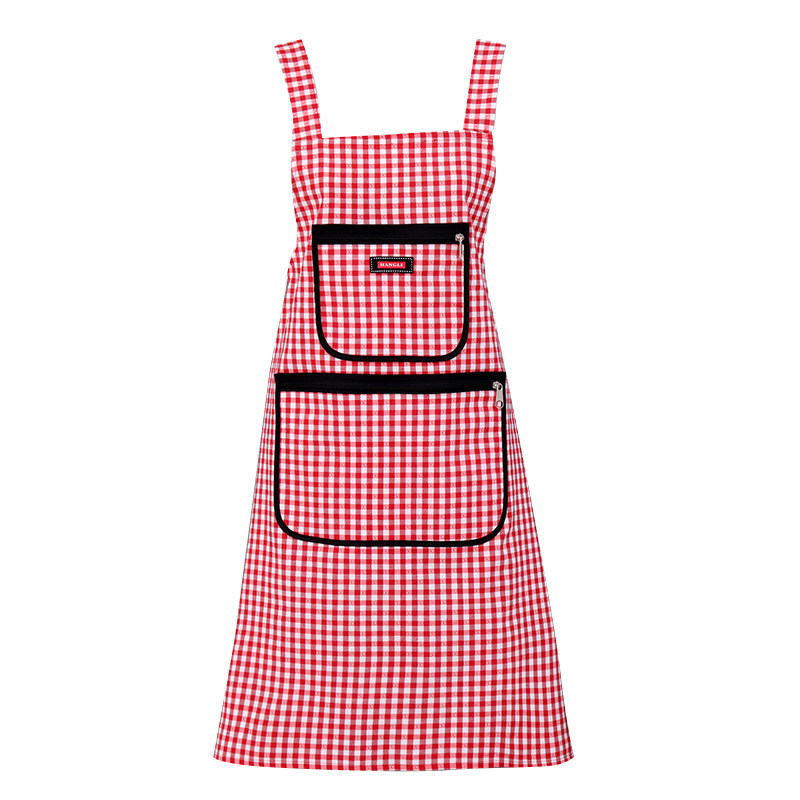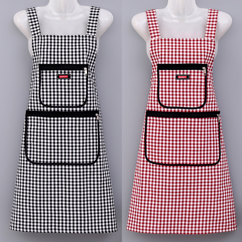 棉布围裙家用厨房防油污时尚透气拉链兜耐脏上班耐磨工作服围腰