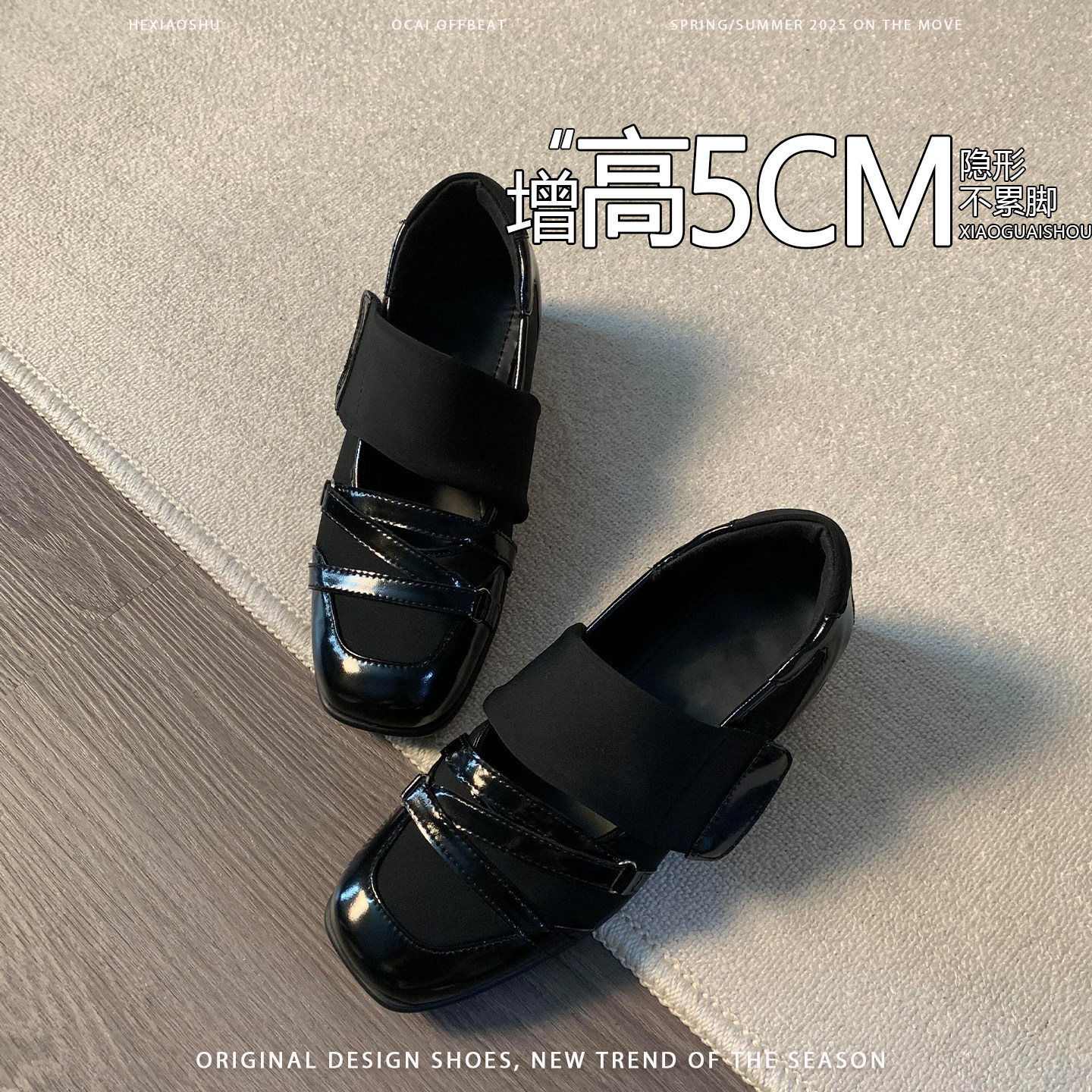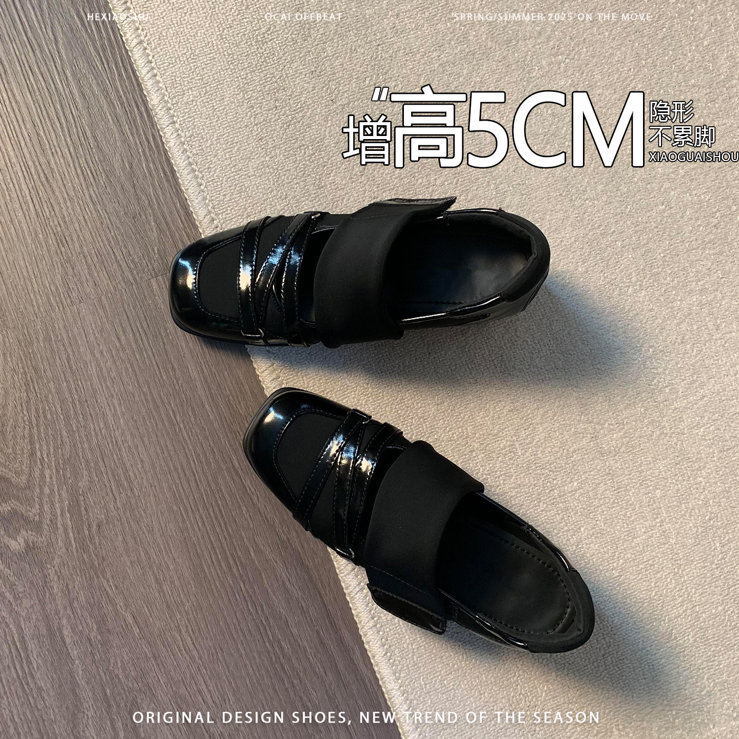复古内增高方头魔术贴芭蕾舞鞋女2026新款软底休闲运动玛丽珍单鞋