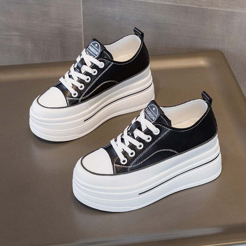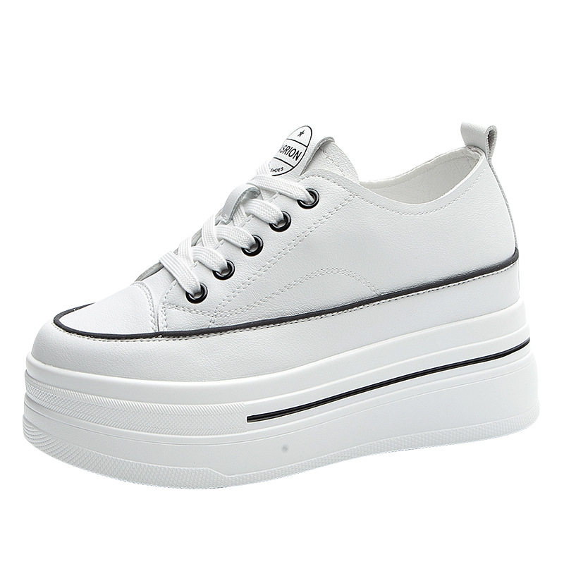 真皮休闲风白色厚底板鞋女内增高8CM小白鞋百搭松糕鞋小个子女鞋
