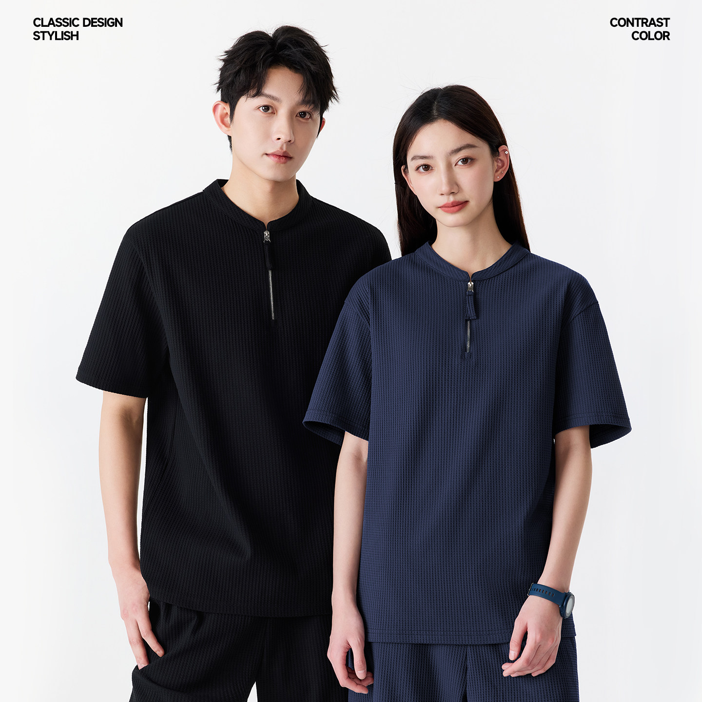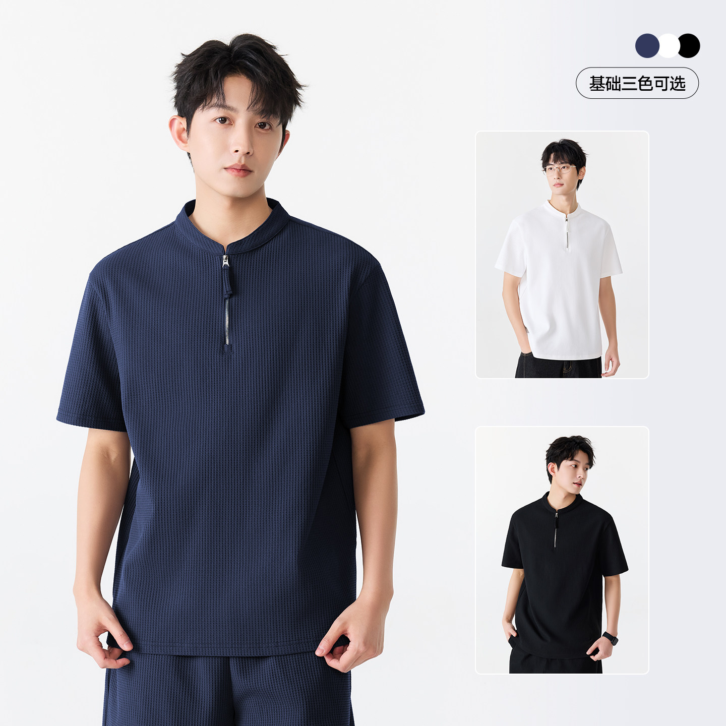 MINISO/名创优品半拉链T恤男夏季速干抗菌肌理感短袖健身训练服A