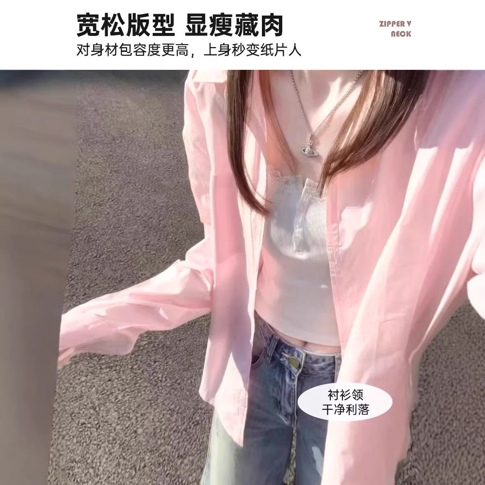 粉色防晒上衣女款2026新款早春季衬衣内搭叠穿纯棉小个子衬衫外套