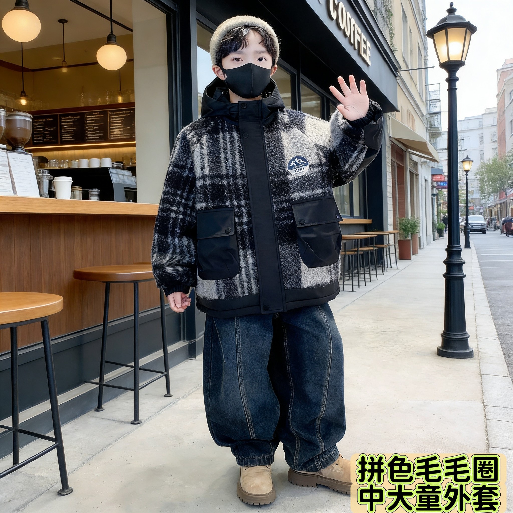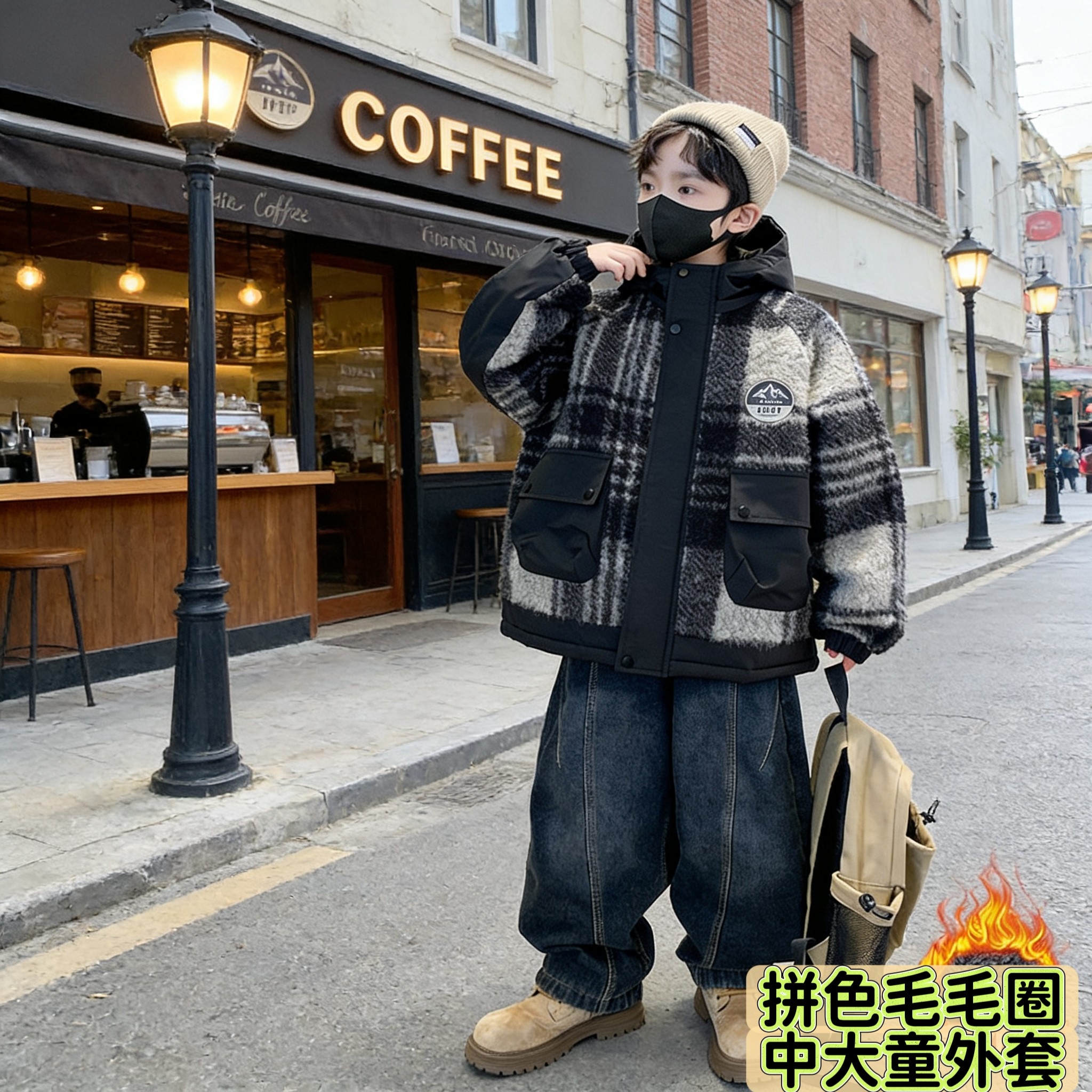 311线报网描述:男童外套秋冬款加绒加厚羊羔绒中大儿童男孩