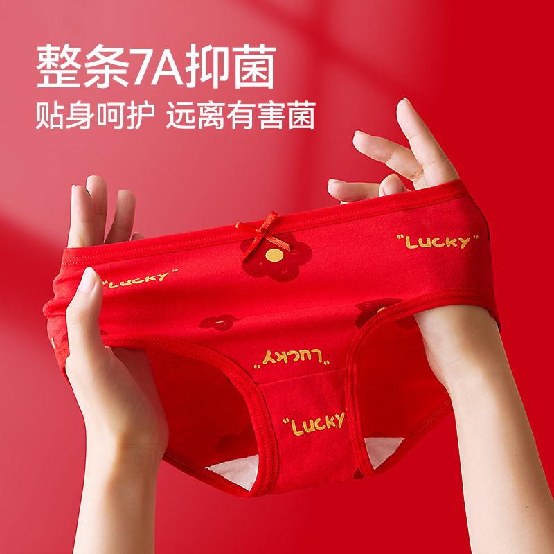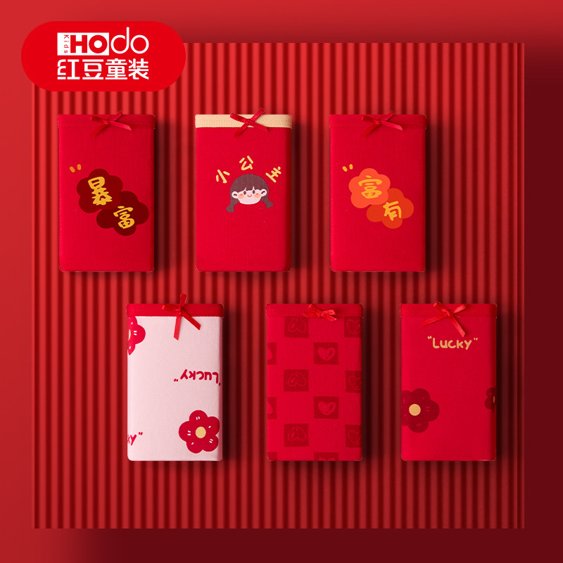 红豆女童本命年红色内裤纯棉女孩新年三角裤马年大童平角短裤抗菌