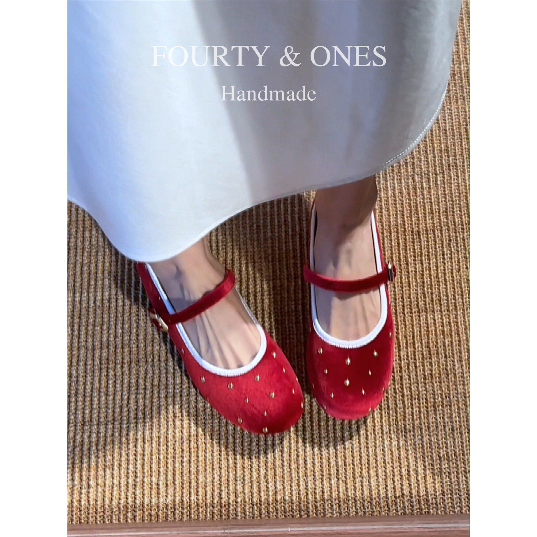 羊皮版~韩系绒面铆钉玛丽珍鞋女2026春季新款内增高圆头浅口单鞋