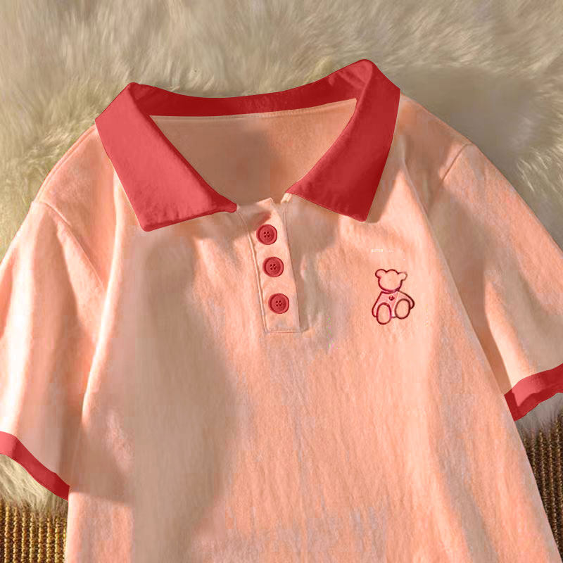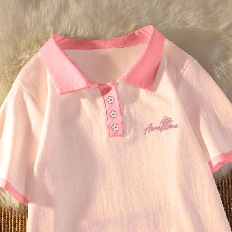 女童纯棉短袖T恤Polo衫2026夏装新款小众国潮潮流宽松女大童上衣