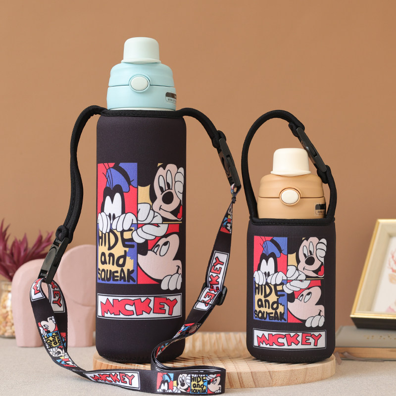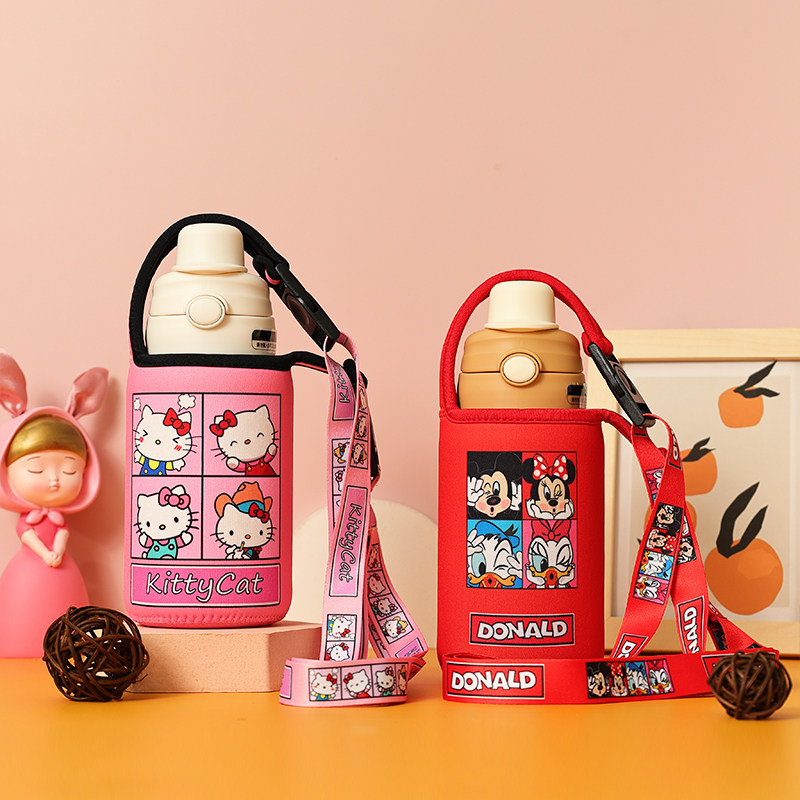 530ml和1000毫升保温杯大容量水杯卡通斜挎手提杯套防摔保护套
