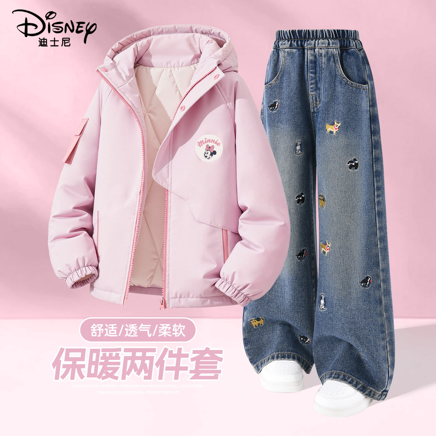 迪士尼女童冬装套装2026新款中大童紫色加厚休闲童装儿童冬季棉服