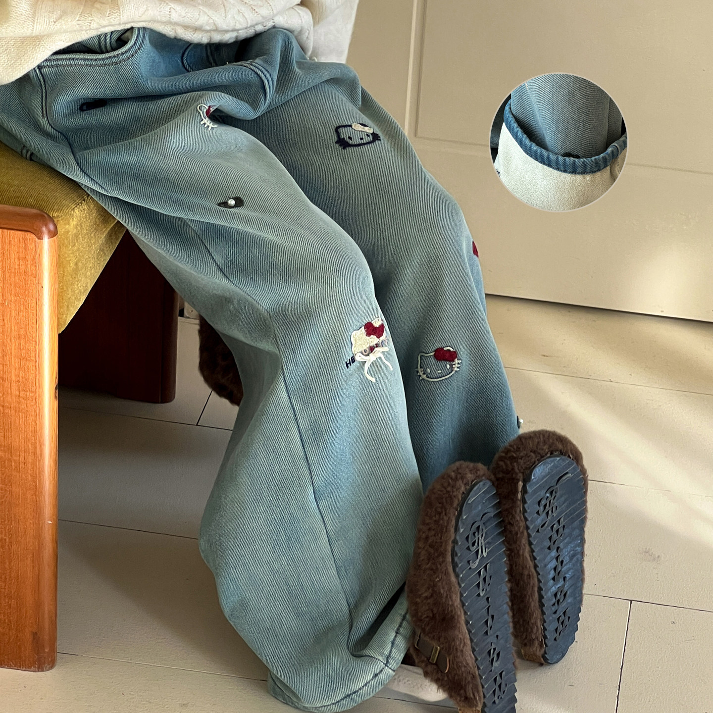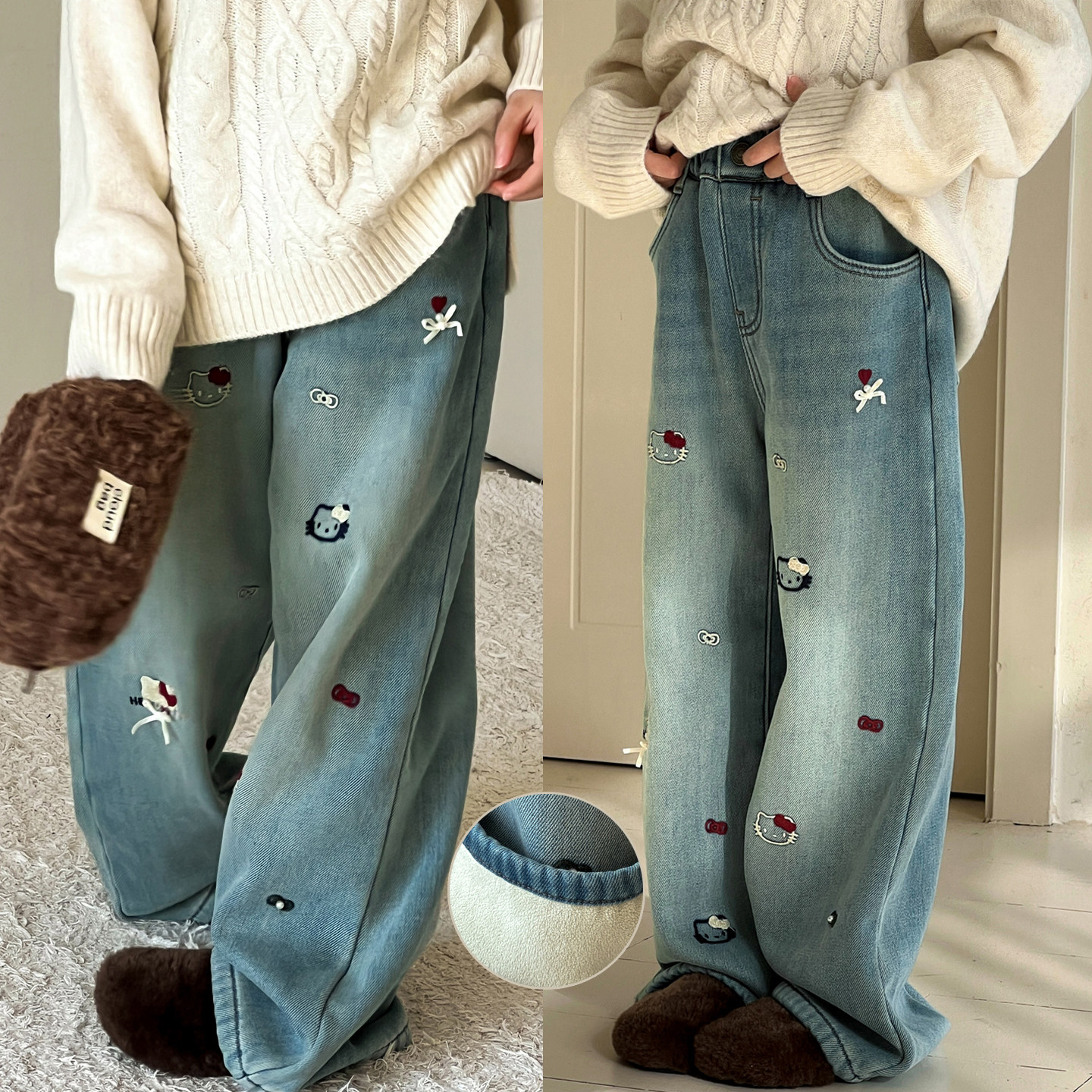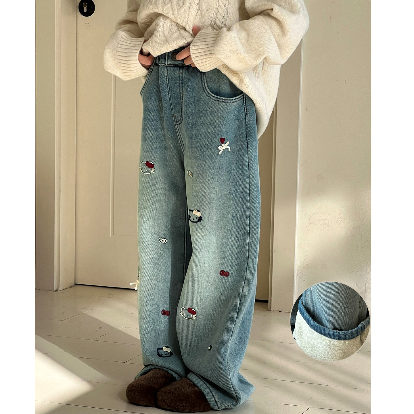 女童加绒牛仔裤秋冬款2026新款初中生儿童裤子女大童一体绒直筒裤