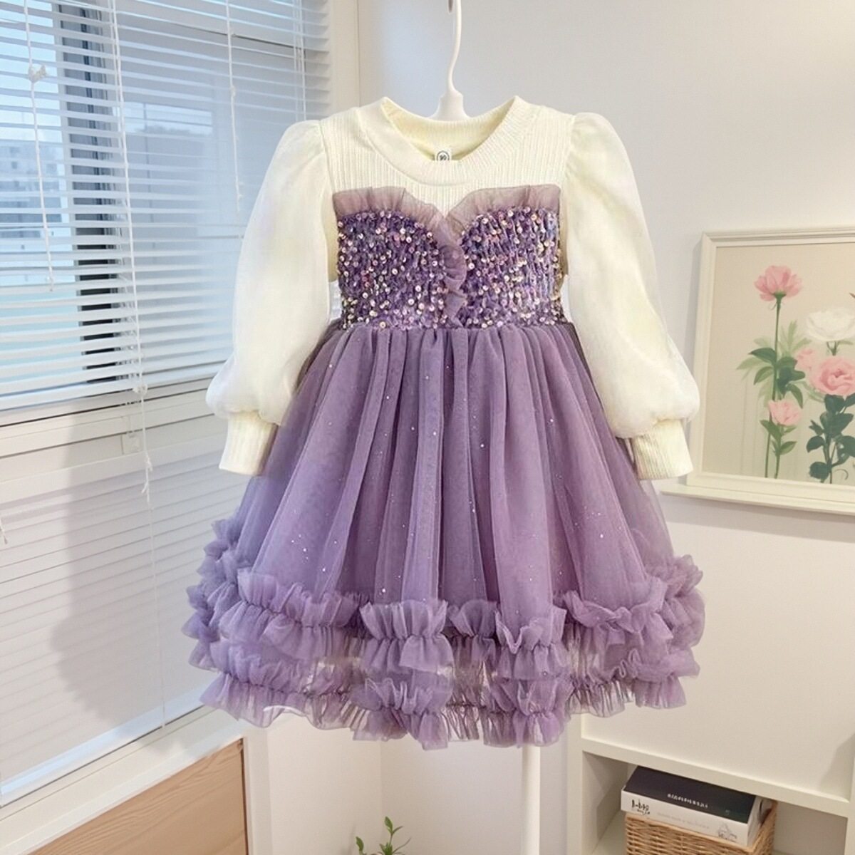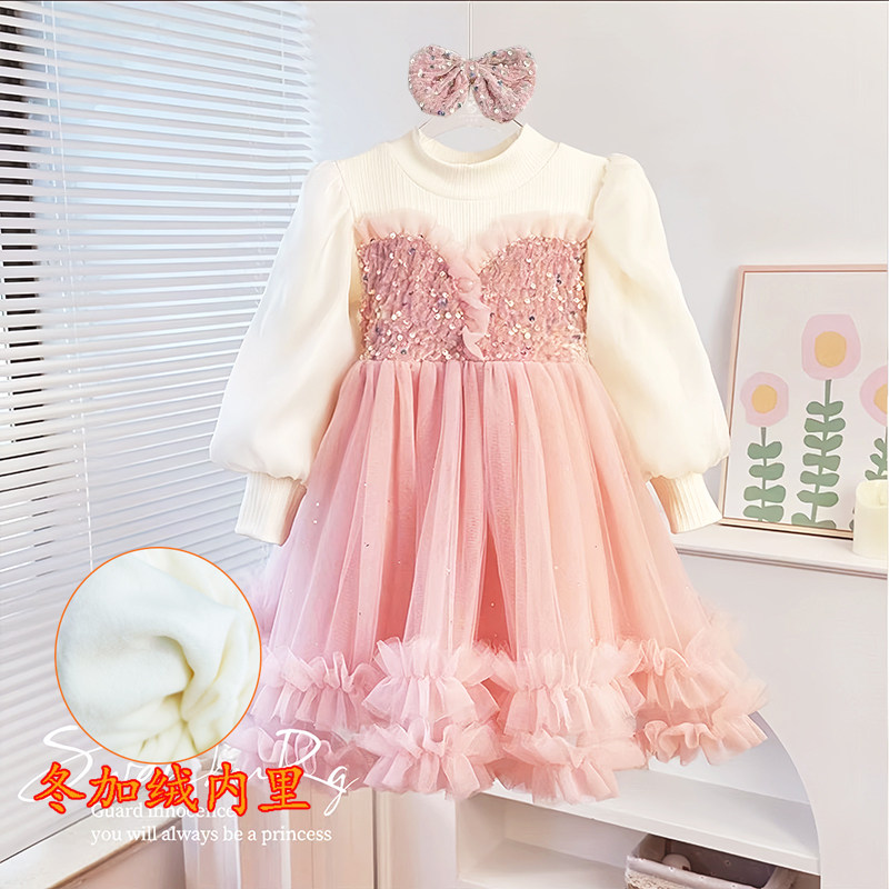 3-10岁女童连衣裙洋气春秋季新款小女孩冬款加绒公主裙生日礼服裙