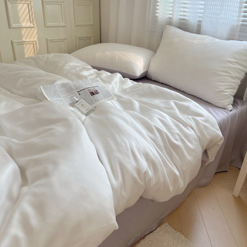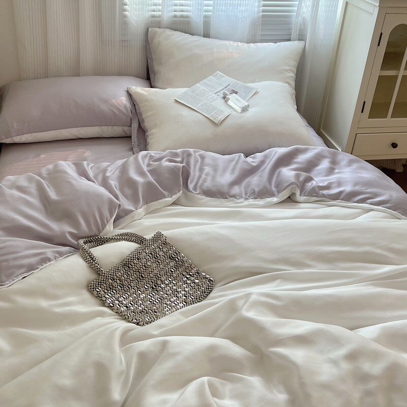 简约奶白紫色纯色冰丝四件套丝滑裸睡被套床单学生宿舍床上三件套