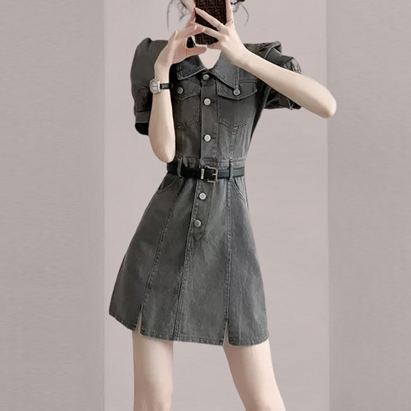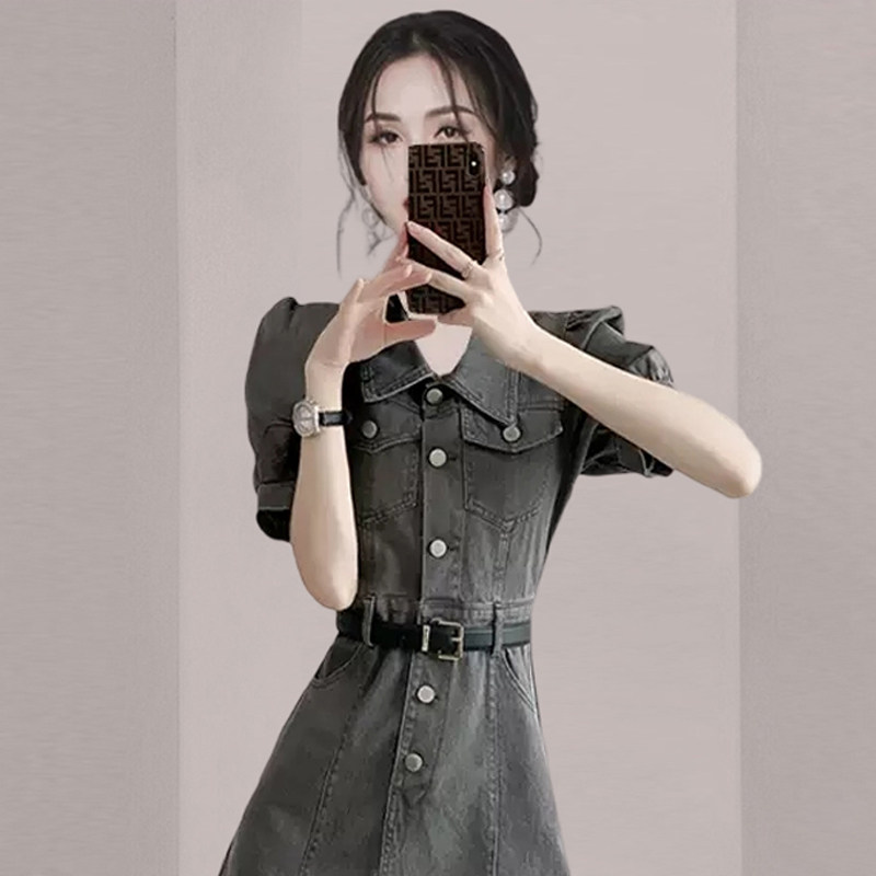 高级感法式名媛连衣裙女2025夏季新款气质收腰显瘦小个子牛仔短裙