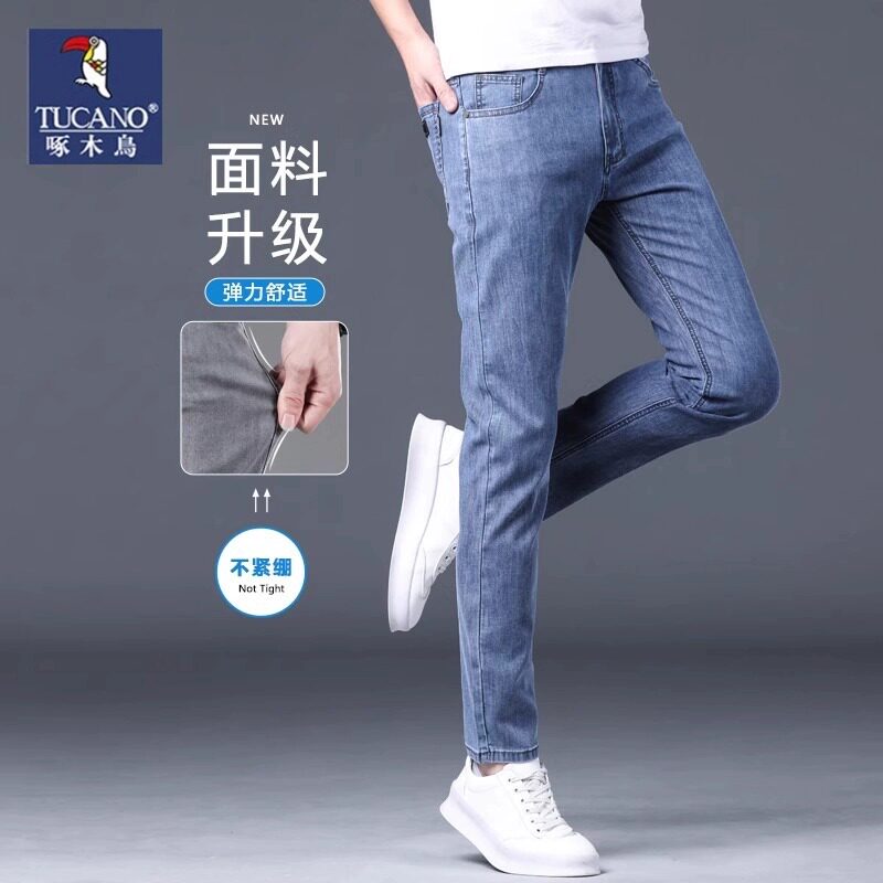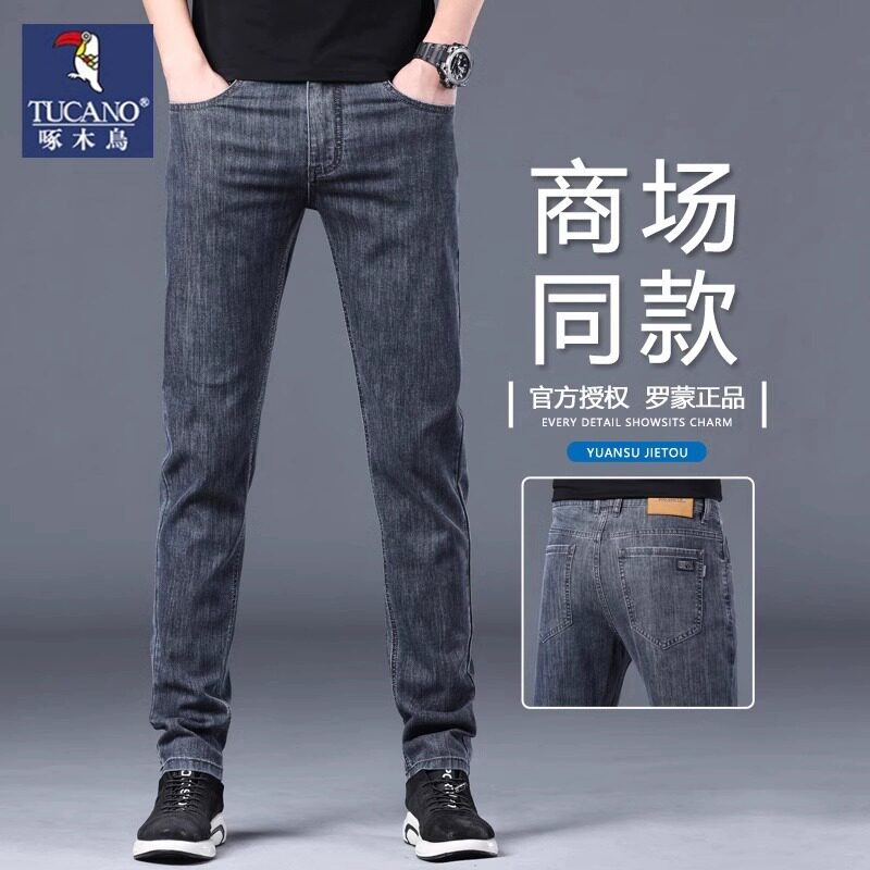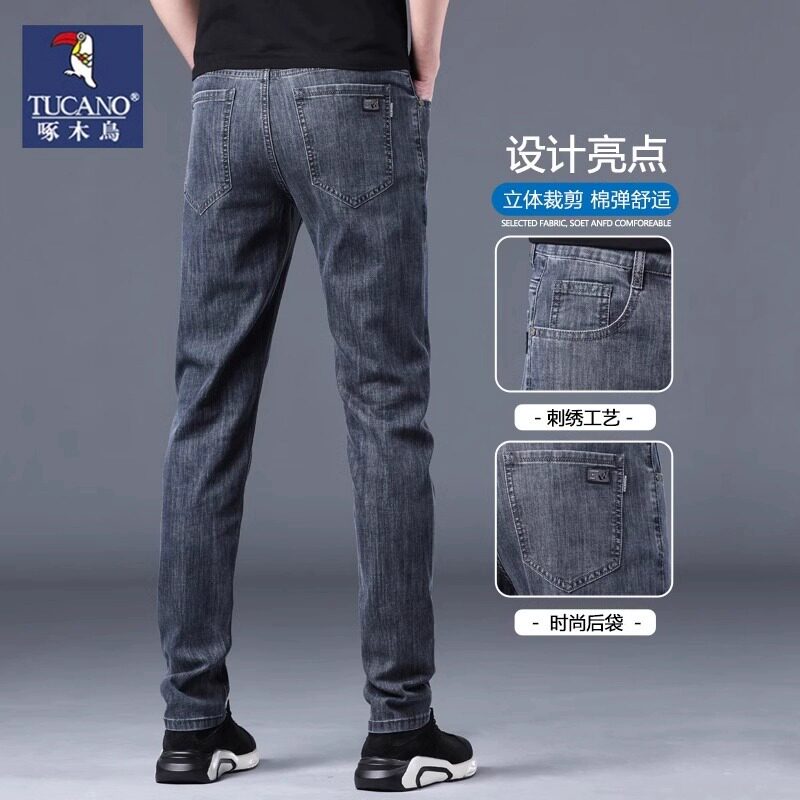 啄木鸟夏季薄款牛仔裤男2026新款长裤男宽松直筒百搭弹力休闲裤男