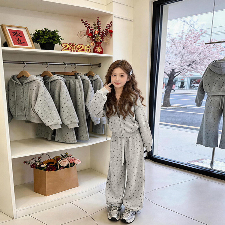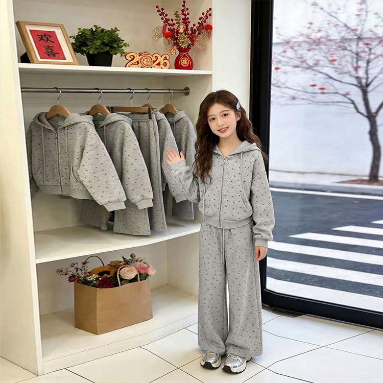 女童卫衣套装休闲春装连帽2026新款中大童洋气时尚运动装外套春秋