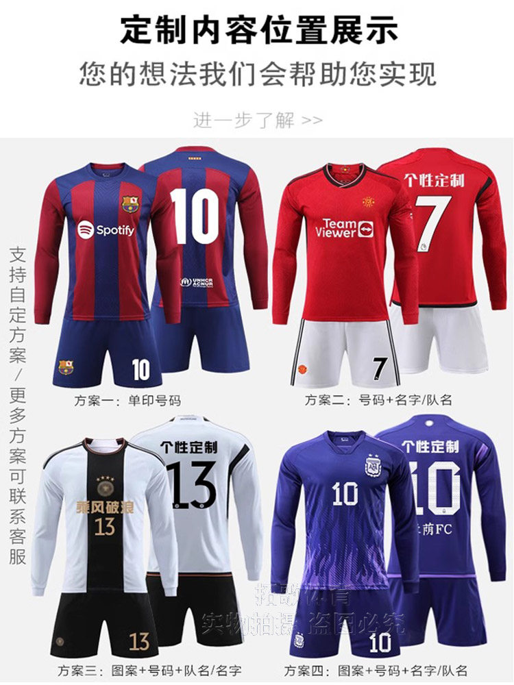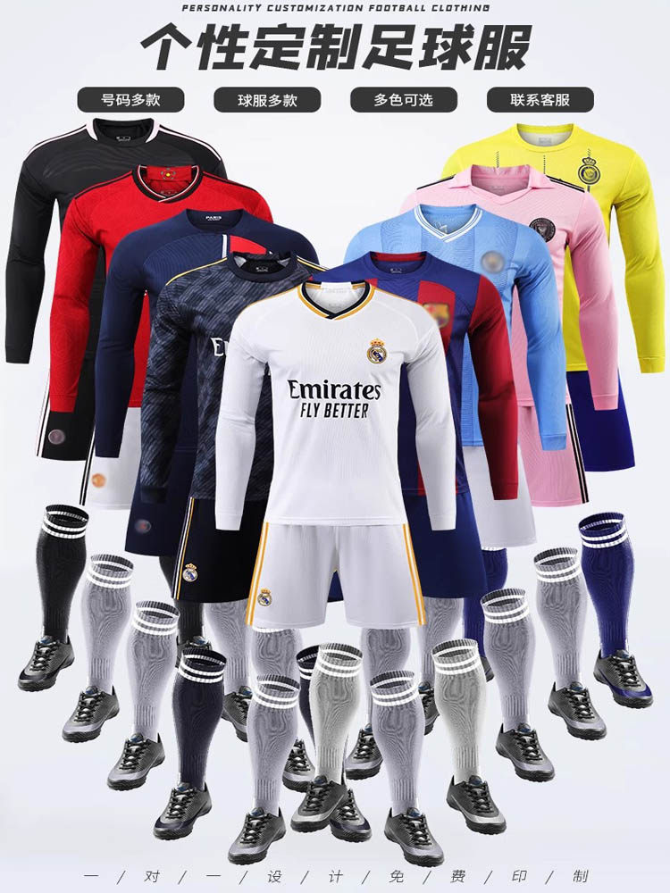 长袖足球服皇马阿根廷巴黎巴萨10号梅西葡萄牙7号C罗AC米兰球衣冬
