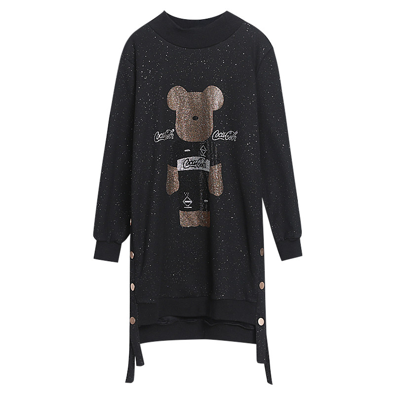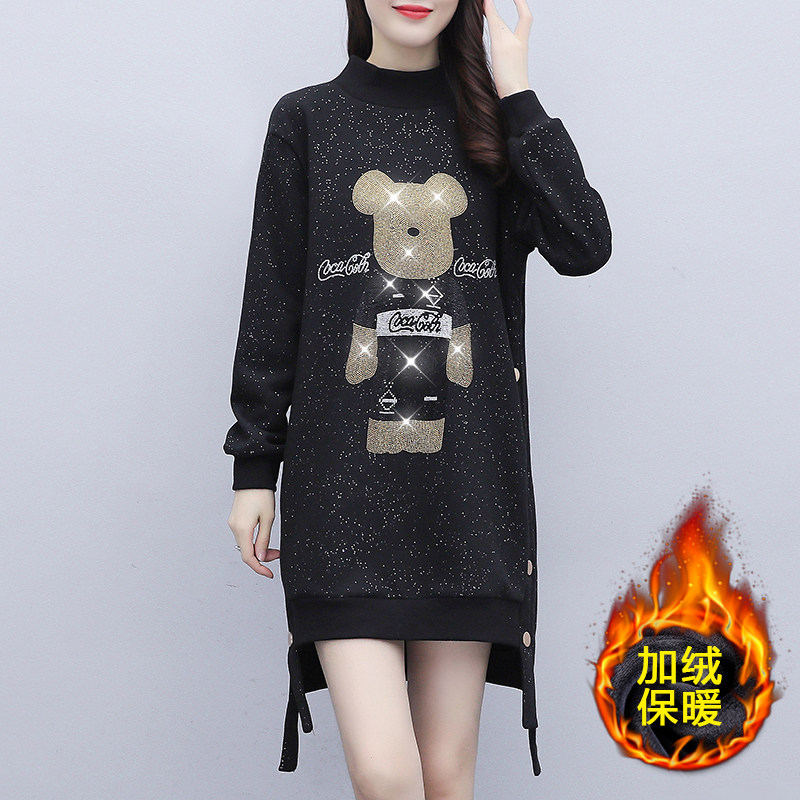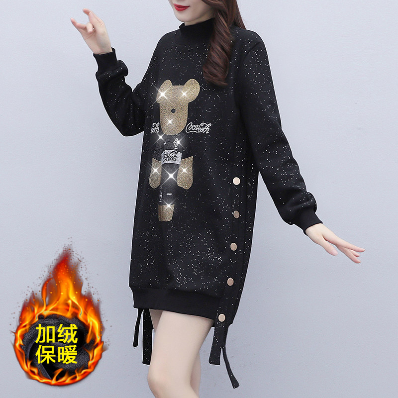 大码加绒加厚卫衣女2025秋冬小个子设计感洋气减龄烫钻打底连衣裙