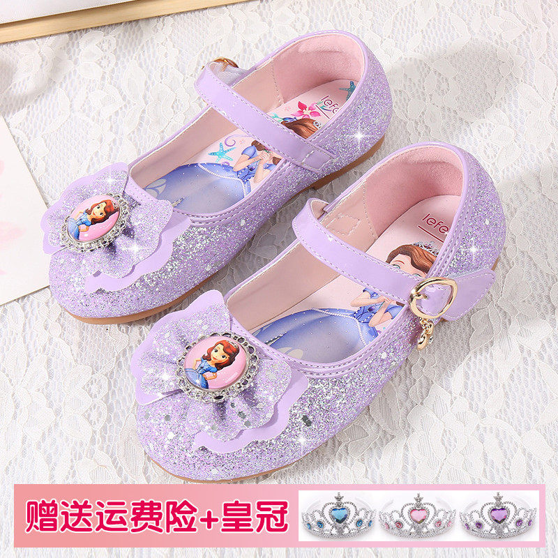 女童公主鞋2026新款苏菲亚配裙子小女孩软底水晶皮鞋艾莎儿童鞋子
