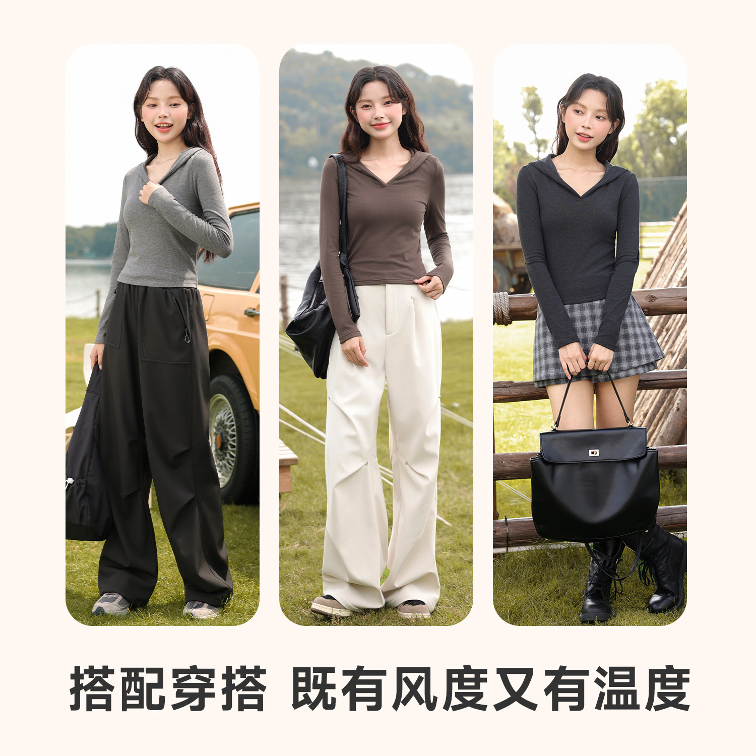 班尼路S&K系列灰色连帽打底衫女款2026春季新款内搭上衣长袖t恤H