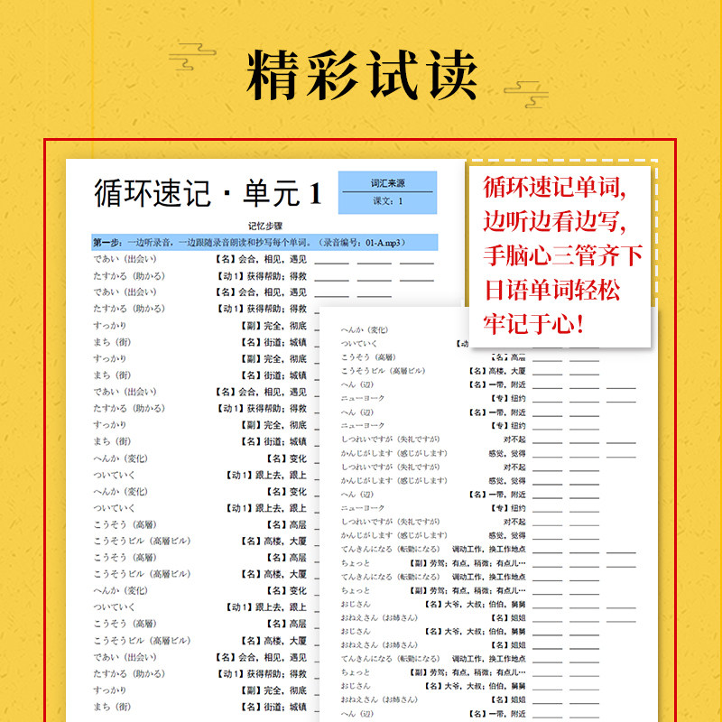 标准日本语词汇循环速记手抄本(新版·中级·上册)